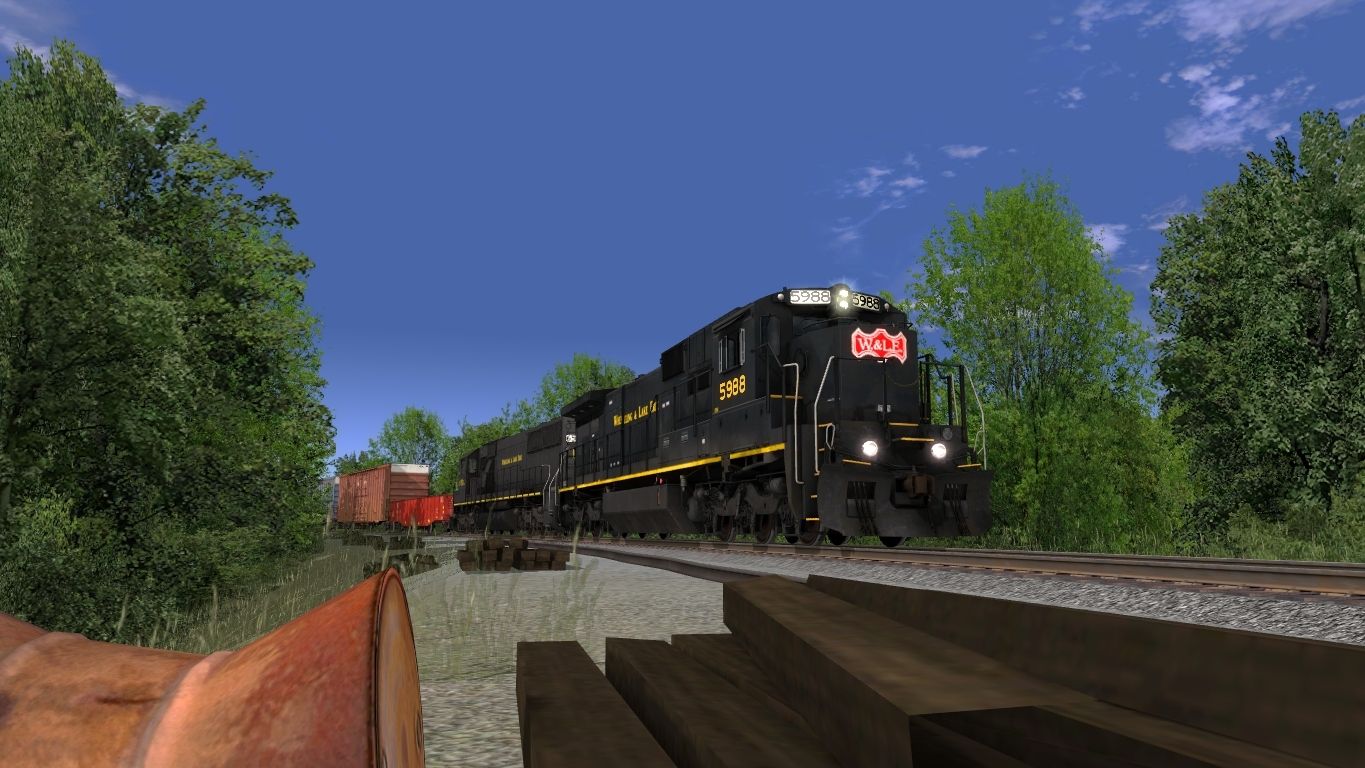 Tags: Trainz: A New Era, W&LE BX East, Default, W&LE C39-8(RL Black), W&LE SD50 2c(black weathered), W&LE 569232 Greenville Gondola, 60ft HC Boxcar NS Ver1, 60ft HC Boxcar KCS xCSX