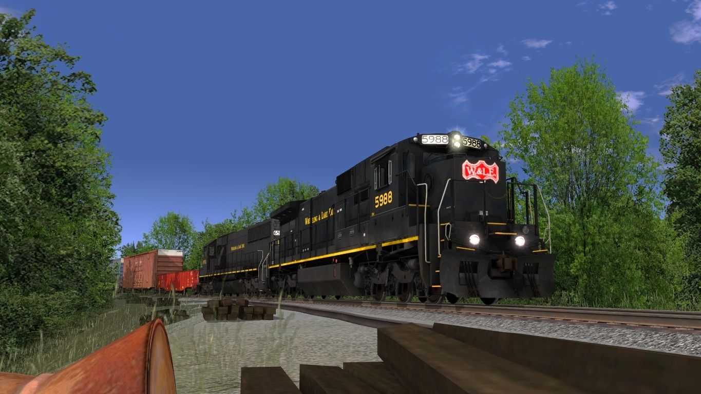 Tags: Trainz: A New Era, W&LE BX East, Default, W&LE C39-8(RL Black), W&LE SD50 2c(black weathered), W&LE 569232 Greenville Gondola, 60ft HC Boxcar NS Ver1, 60ft HC Boxcar KCS xCSX