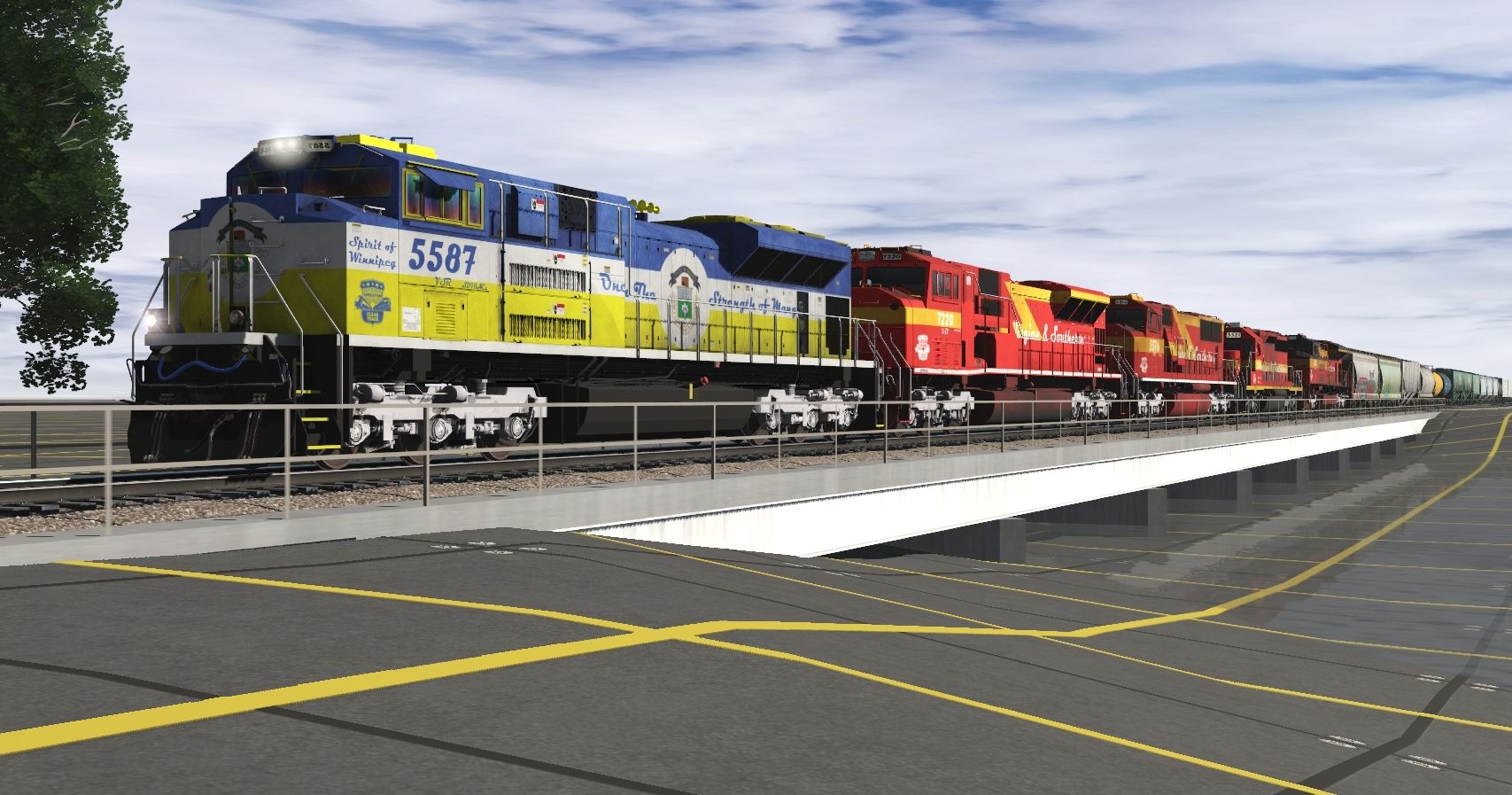 Tags: Trainz Railroad Simulator 2019, CSX Mountain Region, Free Roam, VSR SD70Ace #5587, VSR SD80ACe #7220, VSR SD70AC #5576, VSR SD40-3 #3521, VSR SD70M-2 #5582, ACF Centerflow UP 90649 3 Bay long hatch, ADM ACF Center Flow hopper #85284, ADMX Trinity 3 Bay Hopper, AFIX Cylindrical Hopper, TILX 13818 gal tank car, AGPX 95330 Trinity 3 Bay Hopper