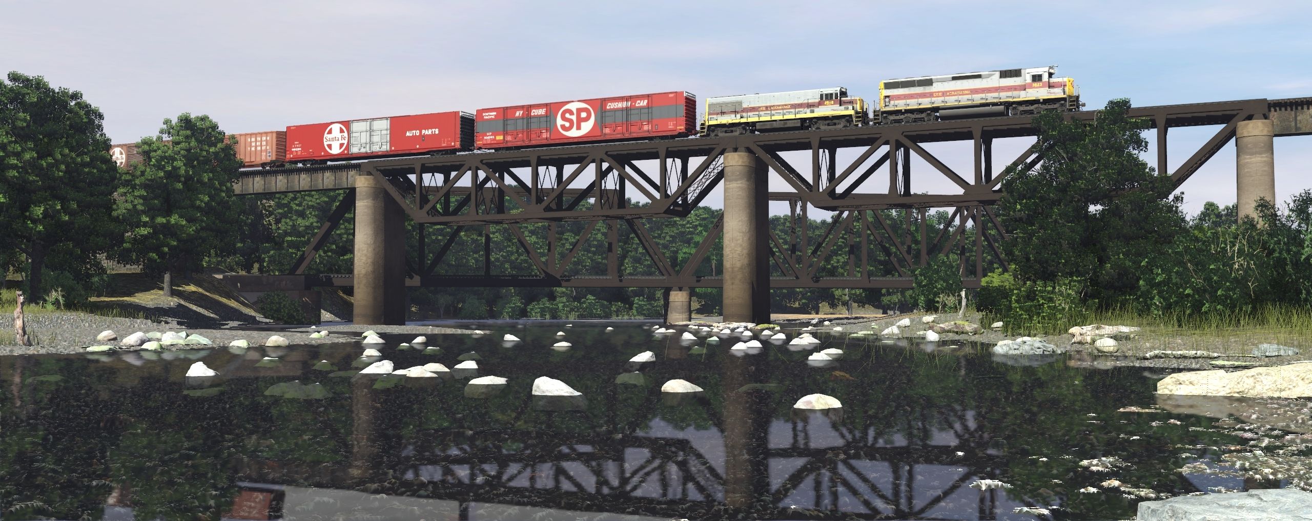 Tags: Trainz Railroad Simulator 2019, EL mahonning Division pre-Alpha, Default, EL SD45, EL U25B late 2513-2527, SP 616532-616553 1970, ATSF 36557-36594 1970, 50ft Boxcar SOUTHERN Railway System yt#, 50ft Boxcar Santa Fe y#, 50ft Boxcar WESTERN MARYLAND RAILROAD ps#, WM 50' ACF Boxcar, SSW 65091-65103 1979, NH LO 2003, 50ft Boxcar Pittsburgh & Lake Erie Railroad y#