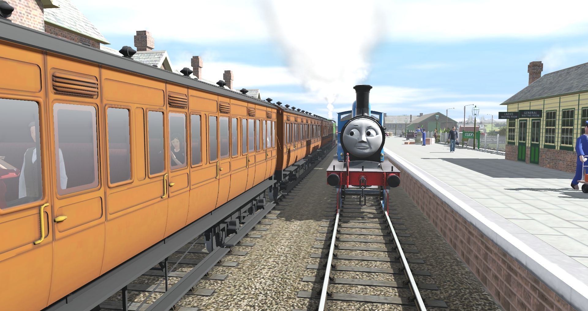Tags: Trainz Railroad Simulator 2019, RWS Wellsworth Branch, Default, TRW - RWS Edward The Blue Engine (New Shape) (TS19), RWS 3D - RWS Henry MK1 V2, NWR Suburban Brake, TRW - RWS Edward's Tender (New Shape) (TS19), NWR Suburban Third, TRW - BR MK1 Composite Coach, RWS 3D - Henry's Tender MK1 V2, TRW - BR MK1 Brake Coach