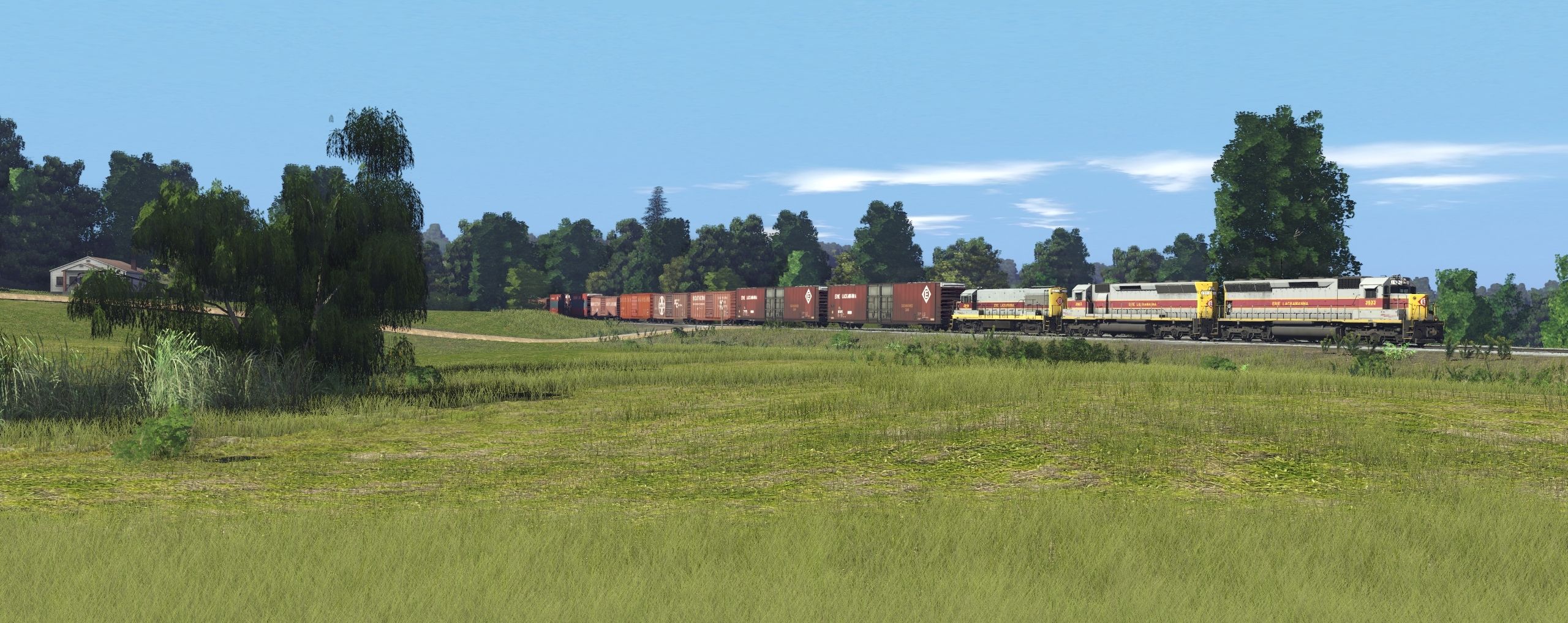 Tags: Trainz Railroad Simulator 2019, EL mahonning Division pre-Alpha, EL mahonning Division pre-Alpha - Default, EL U25B late 2513-2527, EL SD45-2, EL SD45, EL 92100-92242 1976, 50ft Boxcar SOUTHERN Railway System yt#, 50ft Boxcar Santa Fe y#, 50ft Boxcar WESTERN MARYLAND RAILROAD ps#, WM 50' ACF Boxcar, SSW 65091-65103 1979, ATSF 36557-36594 1970, NH LO 2003