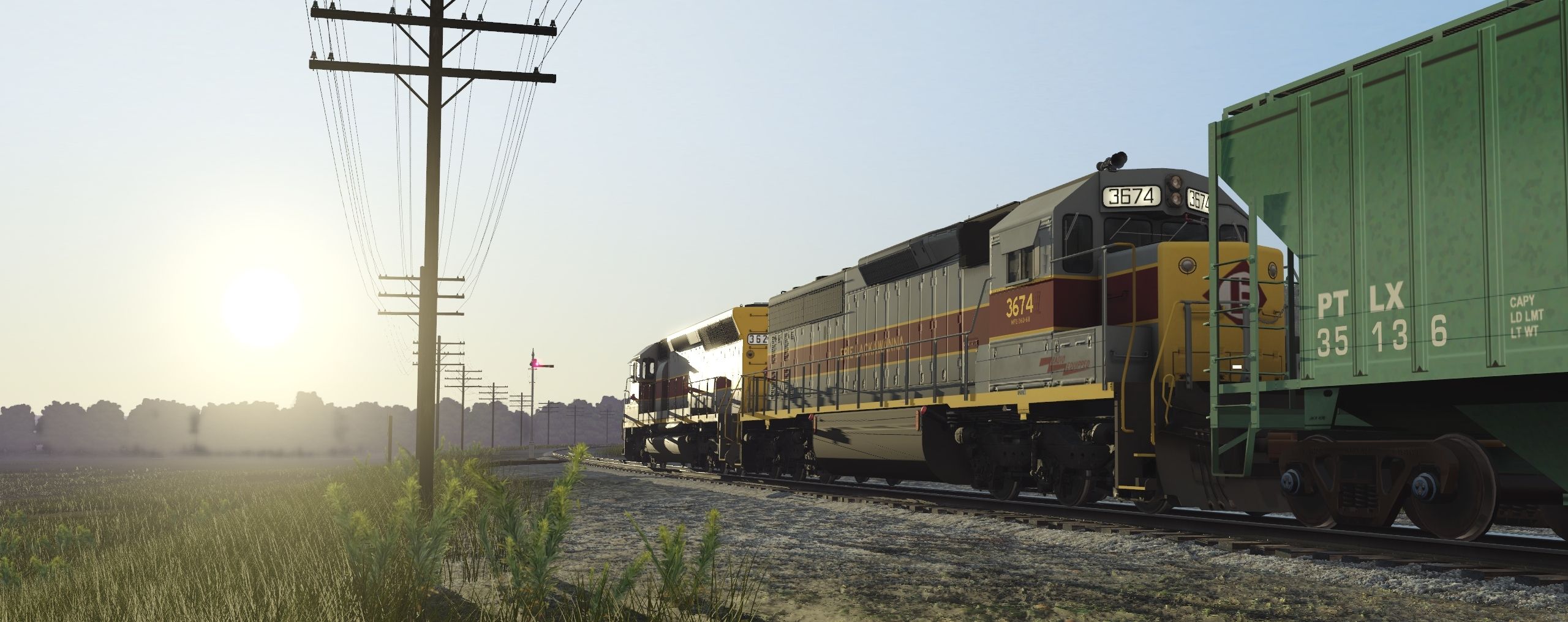 Tags: Trainz Railroad Simulator 2019, EL mahonning Division pre-Alpha, EL mahonning Division pre-Alpha - Default, EL SD45-2, EL SD45, Pullman 4750 Cvd Hopper PTLX 1 DES, EL Bay Window Caboose Maroon