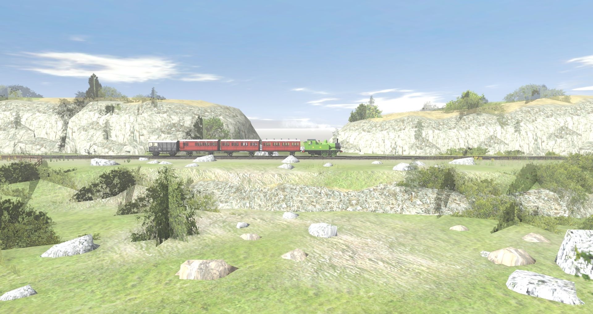 Tags: Trainz Railroad Simulator 2019, Little Western, Default, TTTE - Oliver [TRS19], Red Branchline Coach (1st Class) 2012, Red Branchline Coach (3rd Class Brake) 2012, TTTE - Toad the brakevan [TRS19]