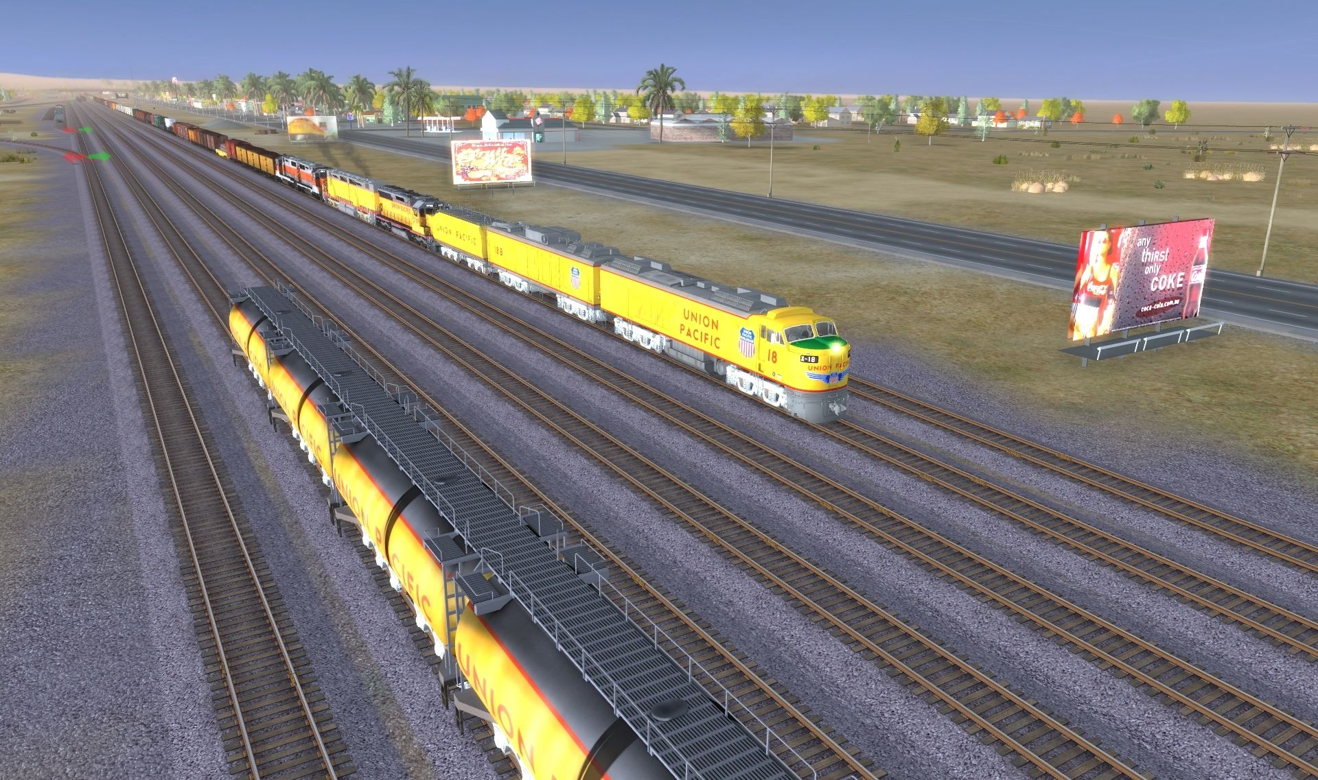 Tags: Trainz: A New Era, Mojave Sub Division, UP GE 8500HP Gas Turbine A-Unit, UP GE 8500HP Gas Turbine B-Unit, SD45(SD40M-2) UP #2781, Union Pacific DD35 A unit #74, Alco RS3 Union Pacific #1292, SD45(SD40M-2) UP #2789, Union Pacific DD35 B unit #74b, WP GP35 Zephyr 2, SP SD45, UP GETL Tender, UP GETL Tender weatherd