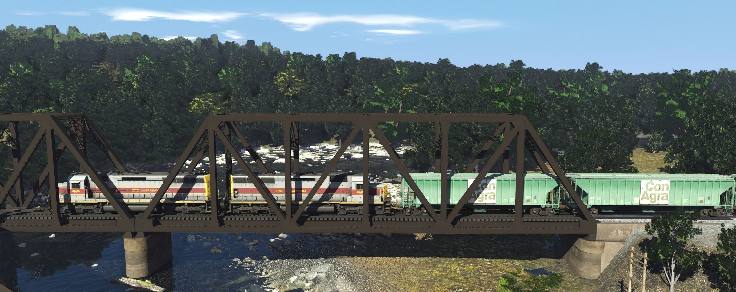 Tags: Trainz Railroad Simulator 2019, EL mahonning Division pre-Alpha, Default, EL SD45, Pullman 4750 Cvd Hopper PTLX 1 DES, EL Bay Window Caboose Maroon