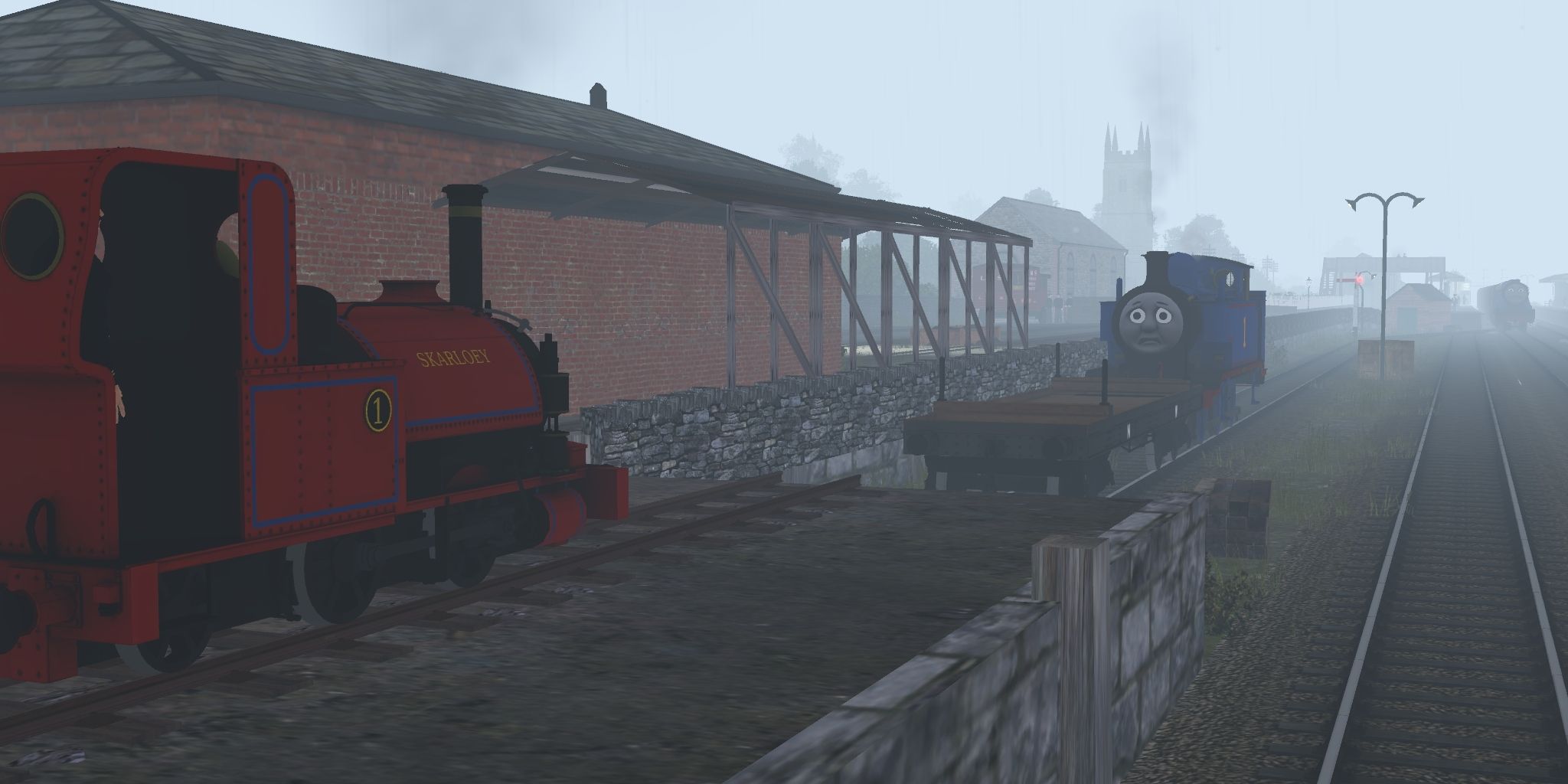 Tags: Trainz Railroad Simulator 2019, CGW (THE RAILWAY SERIES) Crovan's Gate. 2ft NG, Flying Cam, SKR #1 - Skarloey, RWS 3D - RWS Thomas, RWS 3D - RWS Gordon, NWR Bogie Bolster, RWS 3D - Gordon's Tender, NWR Spong Coach (Composite), NWR Spong Coach (Brake)