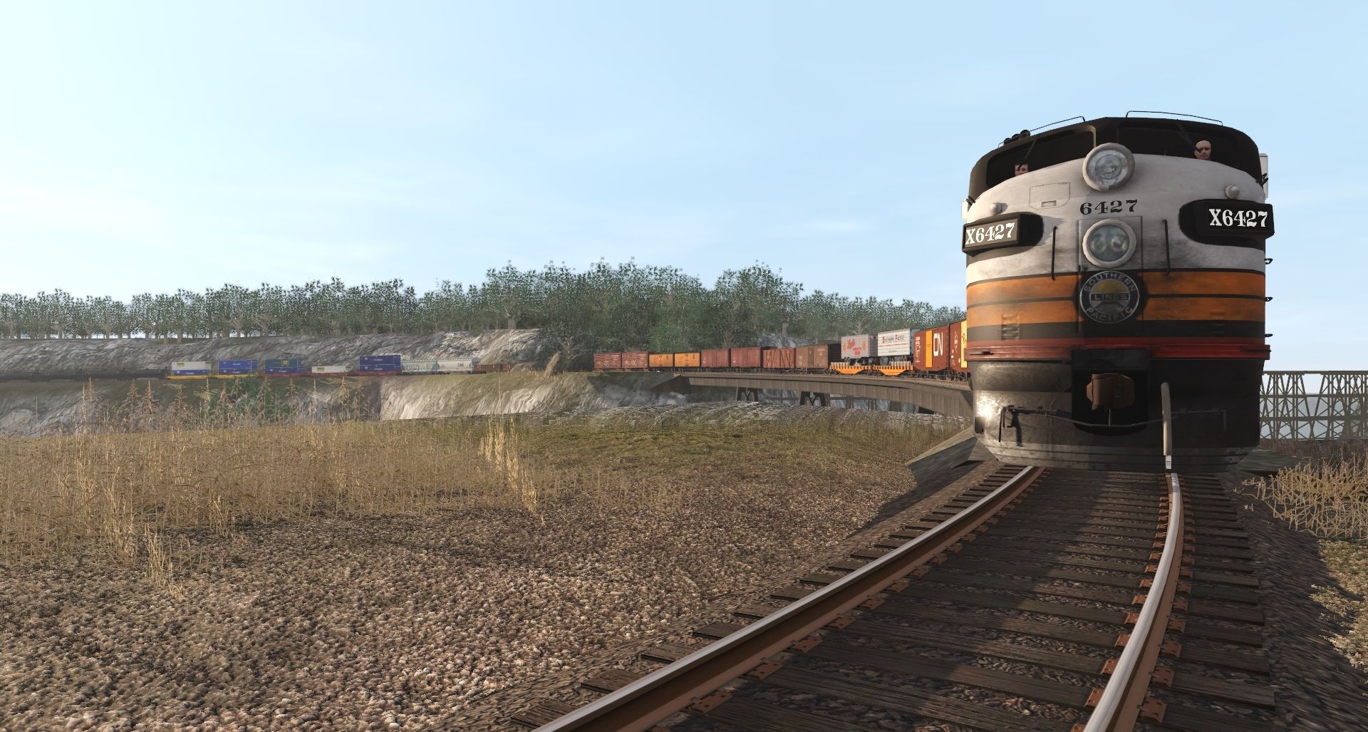 Tags: Trainz Railroad Simulator 2019, Southern Pacific, Default, SP F7A Black Widow Weathered (1950), SP F7B Bloody Nose Weathered, SP F7A Bloody Nose Weathered Plow ND (1958), TUME-300502-Boxcar-50ft-MILW, TUME-300514-Boxcar-50ft-CN, TUME-300594-Trailer-Flatcar-UP, 40ft Boxcar C&O Wood, 40ft Boxcar Fowler BAR 1, 40ft Boxcar SP B-50-20, PFE R-40-2 Reefer Late, 40ft Stockcar C&O 95189 Ant