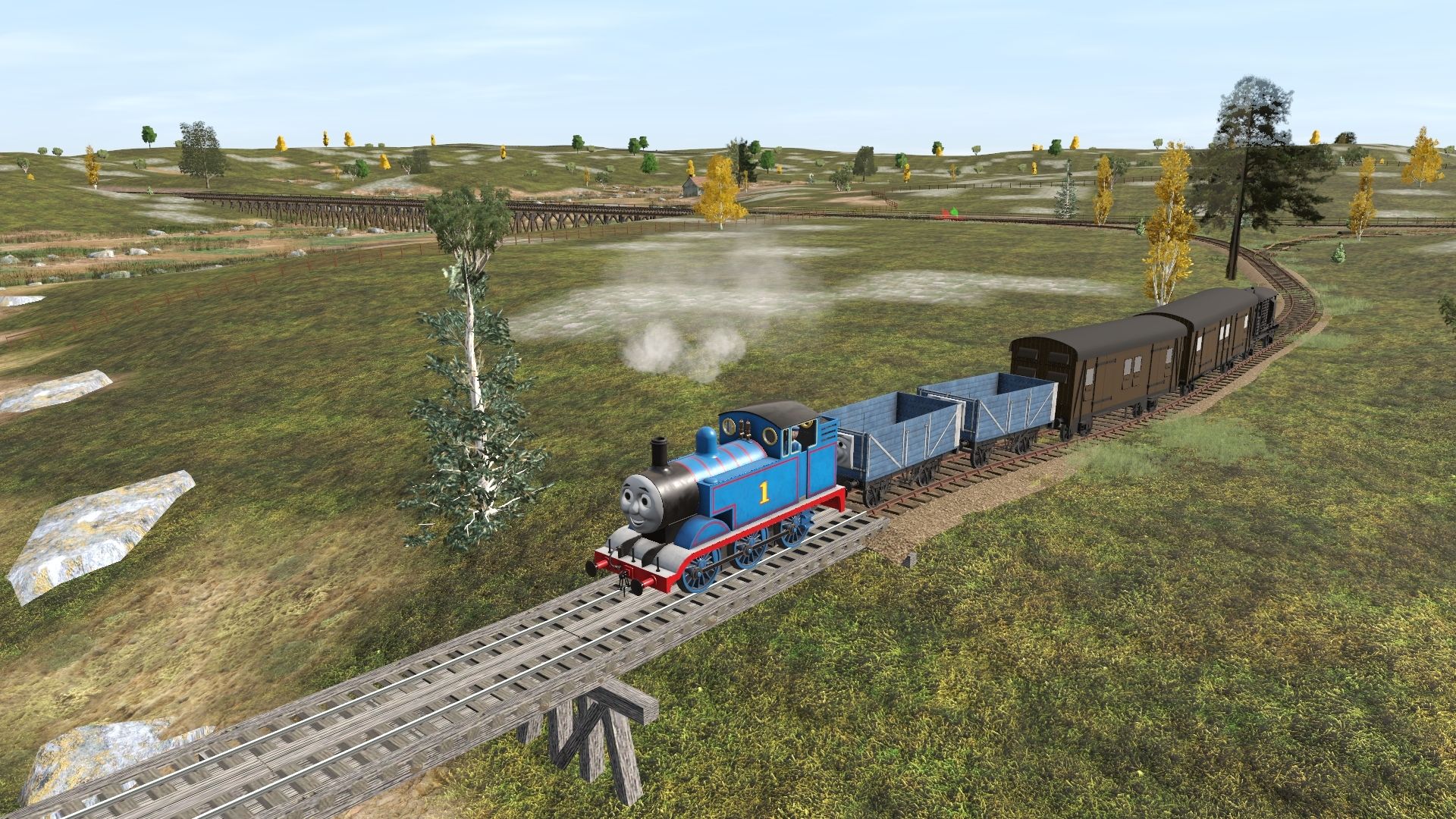 Tags: Trainz Railroad Simulator 2019, Custom Sodor 3, Custom Sodor 3 - Default, TTTE - Thomas The Tank Engine [TRS19], TTTE - 7 plank (HIT era), TRW - SECR 8 Wheeled Van, TRW - SECR 4 Wheeled Van, TRW - SR 25T Pillbox Brakevan, 18inch ore car w/side dump (1 side)