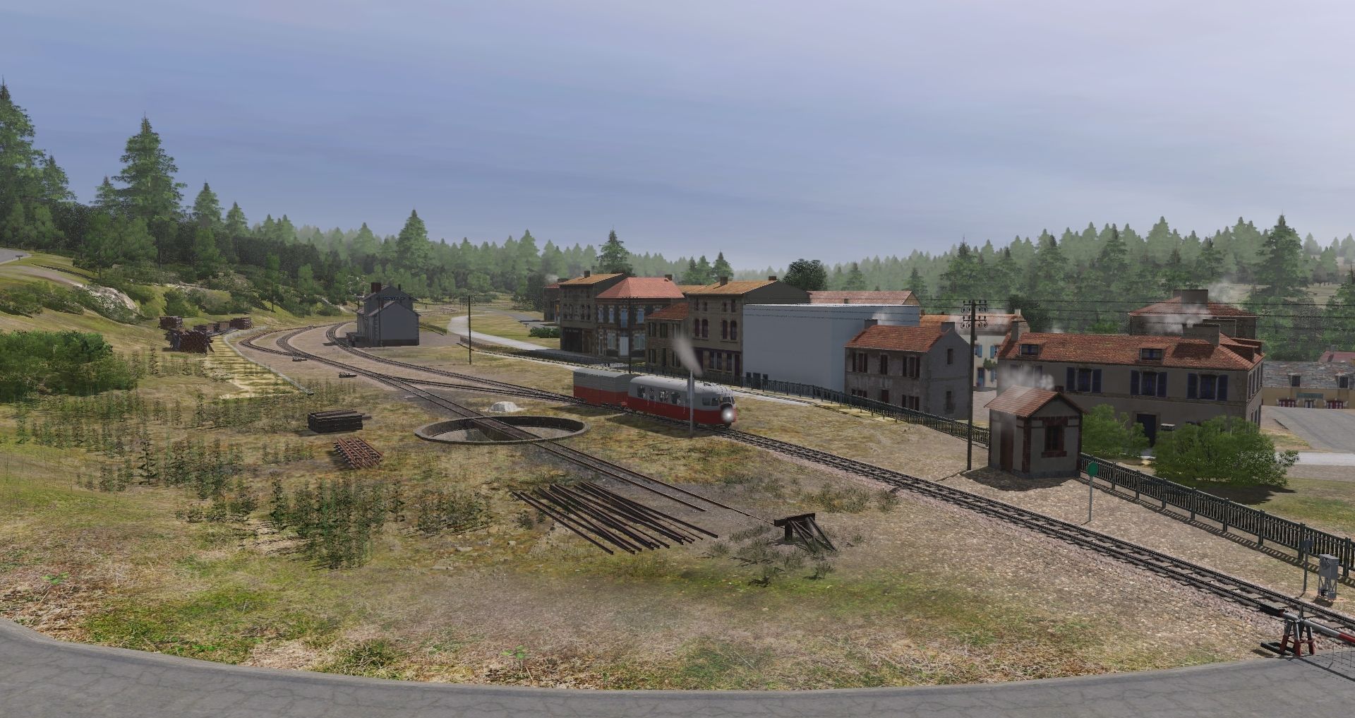 Tags: Trainz Railroad Simulator 2019, Le Cheylard sans textures 1960 bis, Le Cheylard sans textures 1960 bis - Default, CFD_autorail_A80_rouge_et_gris, Remorque messagerie Billard