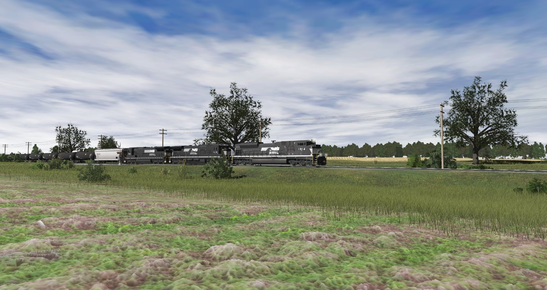 Tags: Trainz Railroad Simulator 2019, TRS19 - NS Sandusky District - Stage 2 - Route, Test, EMD SD70ACe Norfolk Southern, GE C40-8 NS Horsehead, GE C40-8 NS Ex CR, UNPX ACF Centerflow 4 Bay long hatch, SHPX 20800 gal tank car, BNBX 20800 gal tank car