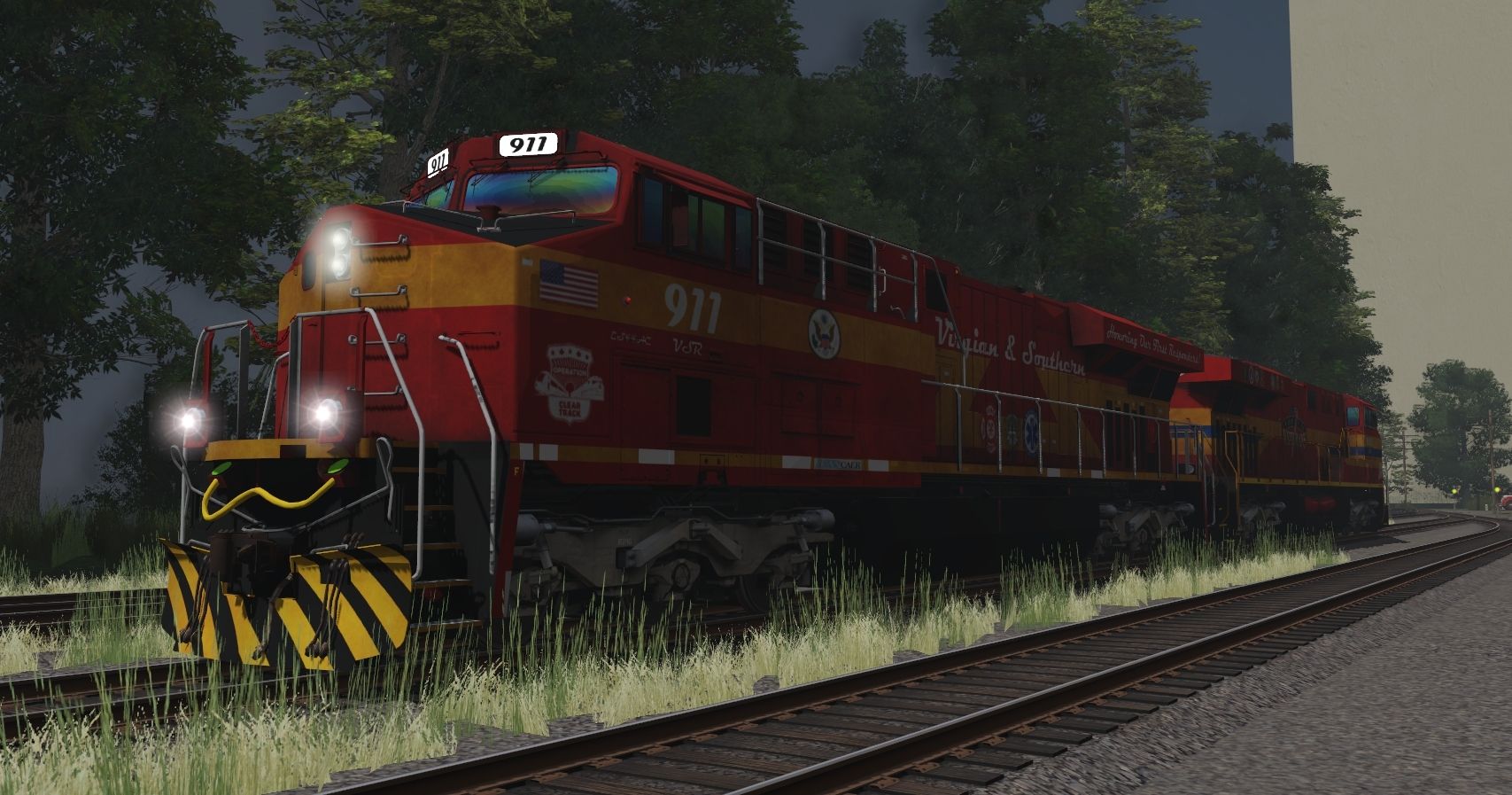 Tags: Trainz Railroad Simulator 2019, Appalachian Central, Appalachian Central - Default, VSR ES44AC First Responders Unit, VSR ES44AH Veterans