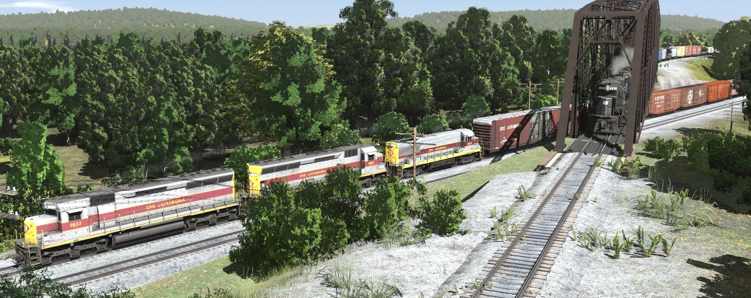 Tags: Trainz Railroad Simulator 2019, EL mahonning Division pre-Alpha, EL mahonning Division pre-Alpha - Default, EL SD45, PC SD38, EL U25B late 2513-2527, PC GP38-2, PC ex-NH U25B ph4, EL 92100-92242 1976, PC G41A Coil Car Weathered, 50ft Boxcar SOUTHERN Railway System yt#, ASAB 50ft Boxcar FMC, 50ft Boxcar Santa Fe y#, 50ft Boxcar WESTERN MARYLAND RAILROAD ps#