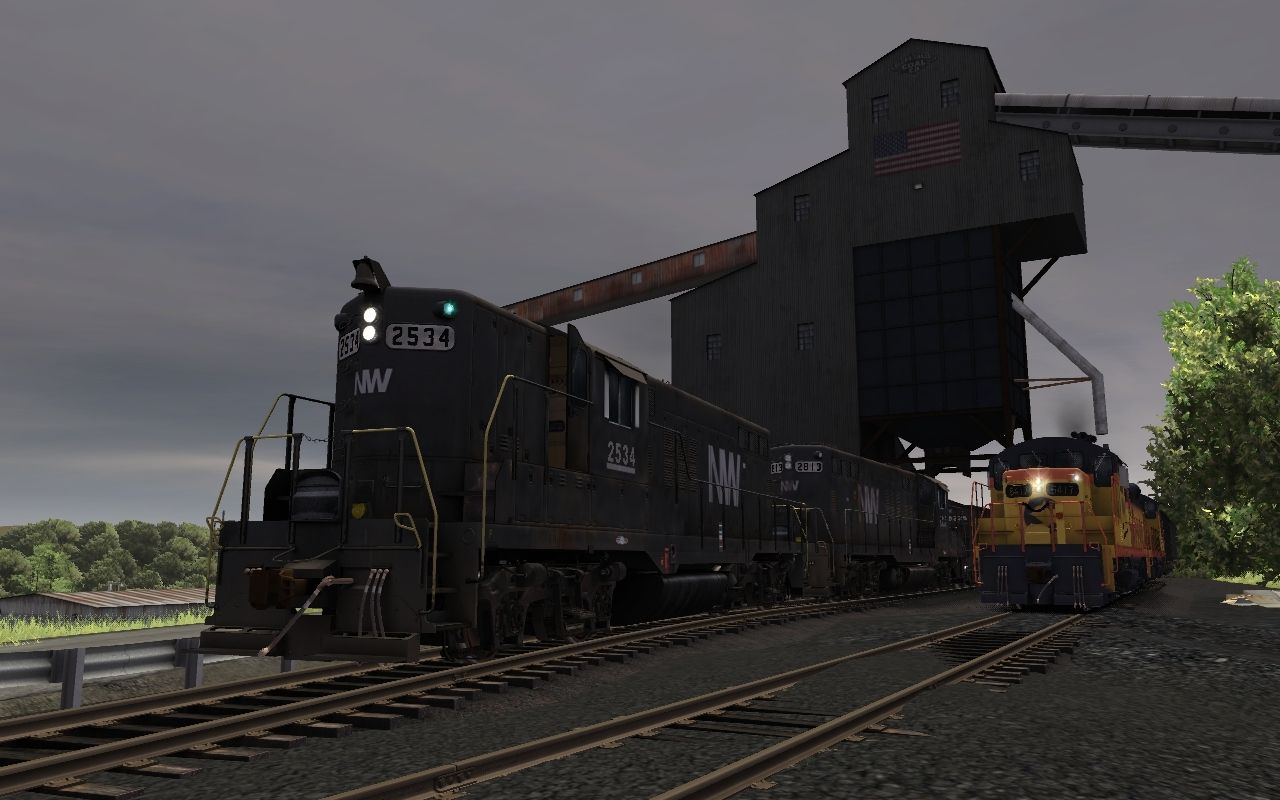 Tags: Trainz: A New Era, Coal Country - JointedRail.com, Chessie System (WM) GP9 LH, NW GP9 black, Chessie System (B&O) GP9 HH, Chessie System 100 Ton Hopper, NW 85 Ton Hopper