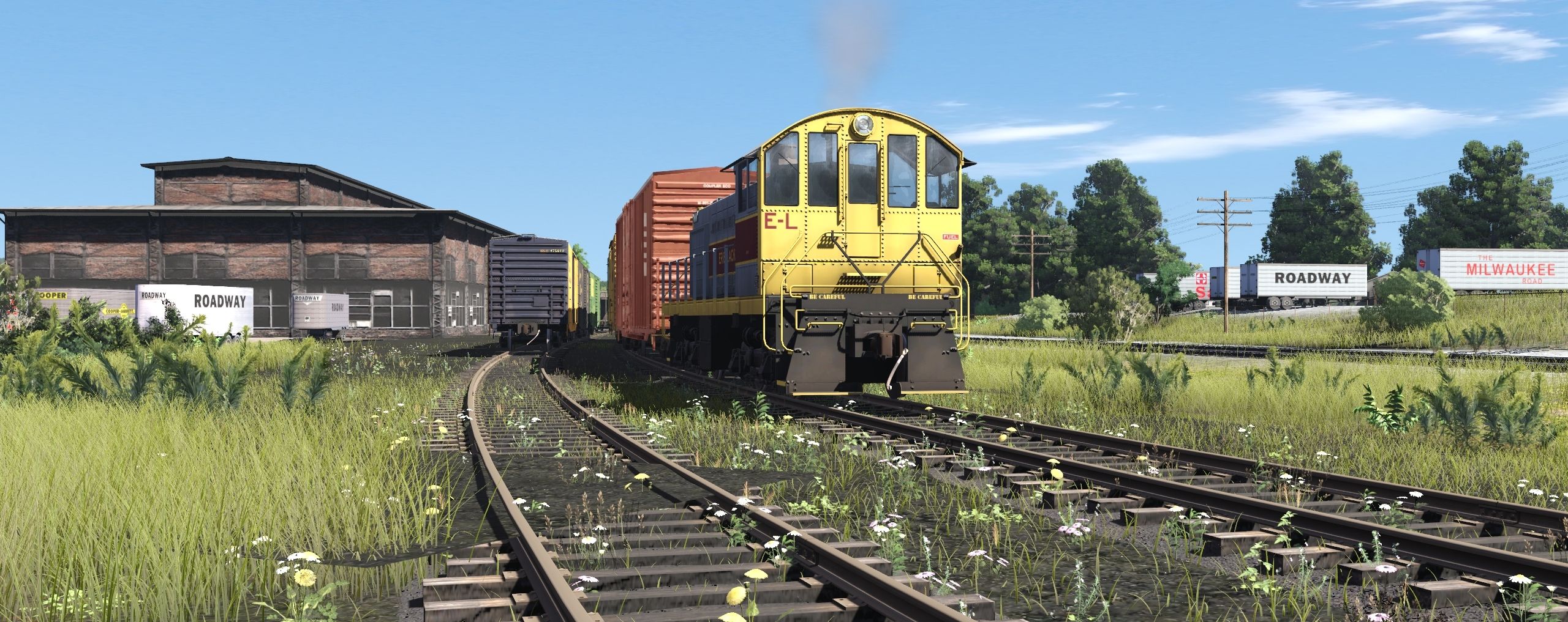 Tags: Trainz Railroad Simulator 2019, EL mahonning Division pre-Alpha, Default, EL S2 Gray, EL SD45, 50ft Boxcar ERIE LACKAWANNA RAILWAY pd#, BN 50' RBL, B&O 50' PS-1, CB&Q 50' RBL 2, ACL 50' PS-1, RDG 50' PS-1, SSW PS 2bay LO hopper, MILW LO 4750 3 bay, GATX Tank GATC 10000 (Black)