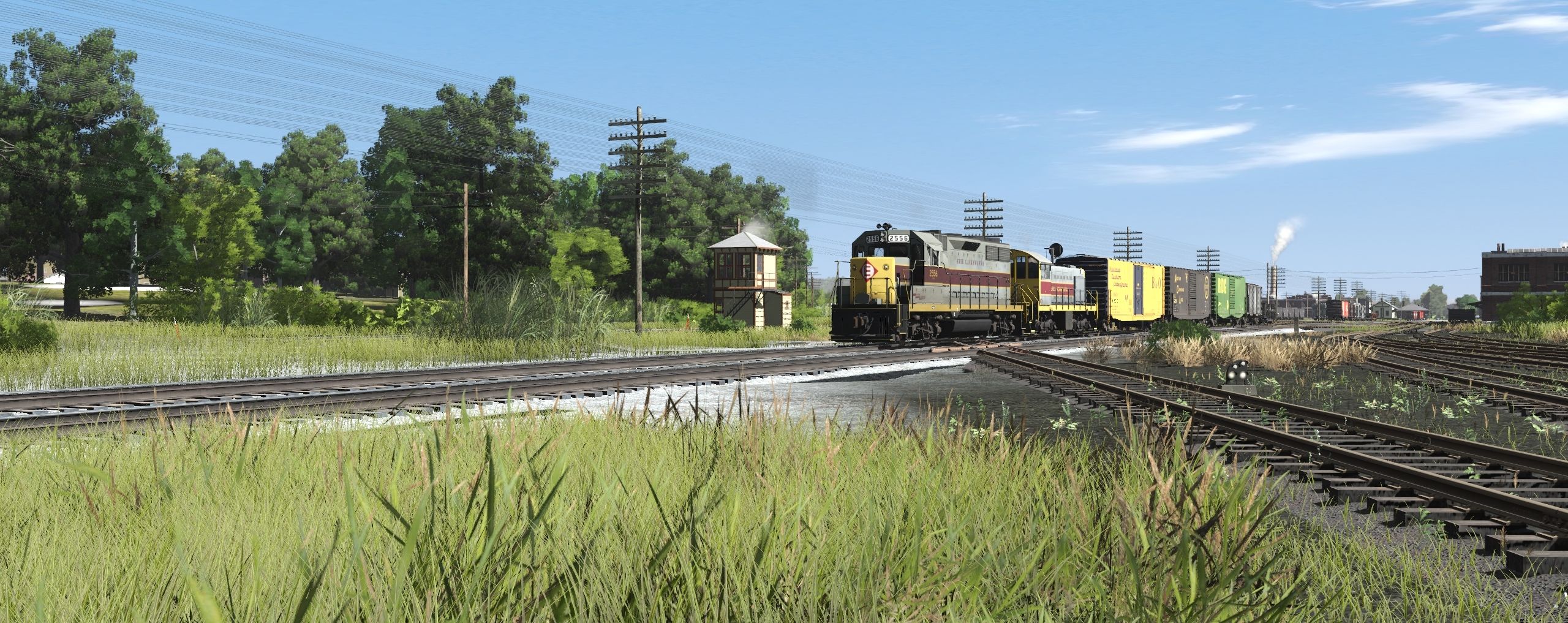 Tags: Trainz Railroad Simulator 2019, EL mahonning Division pre-Alpha, EL mahonning Division pre-Alpha - Default, GP35: EL #2556, EL S2 Gray, PC SD38, B&O 50' PS-1, ACL 50' PS-1, RDG 50' PS-1, SSW PS 2bay LO hopper, EL Greenville Gondola, EL LO red 2893, EL LO 2893, PC G41A Coil Car
