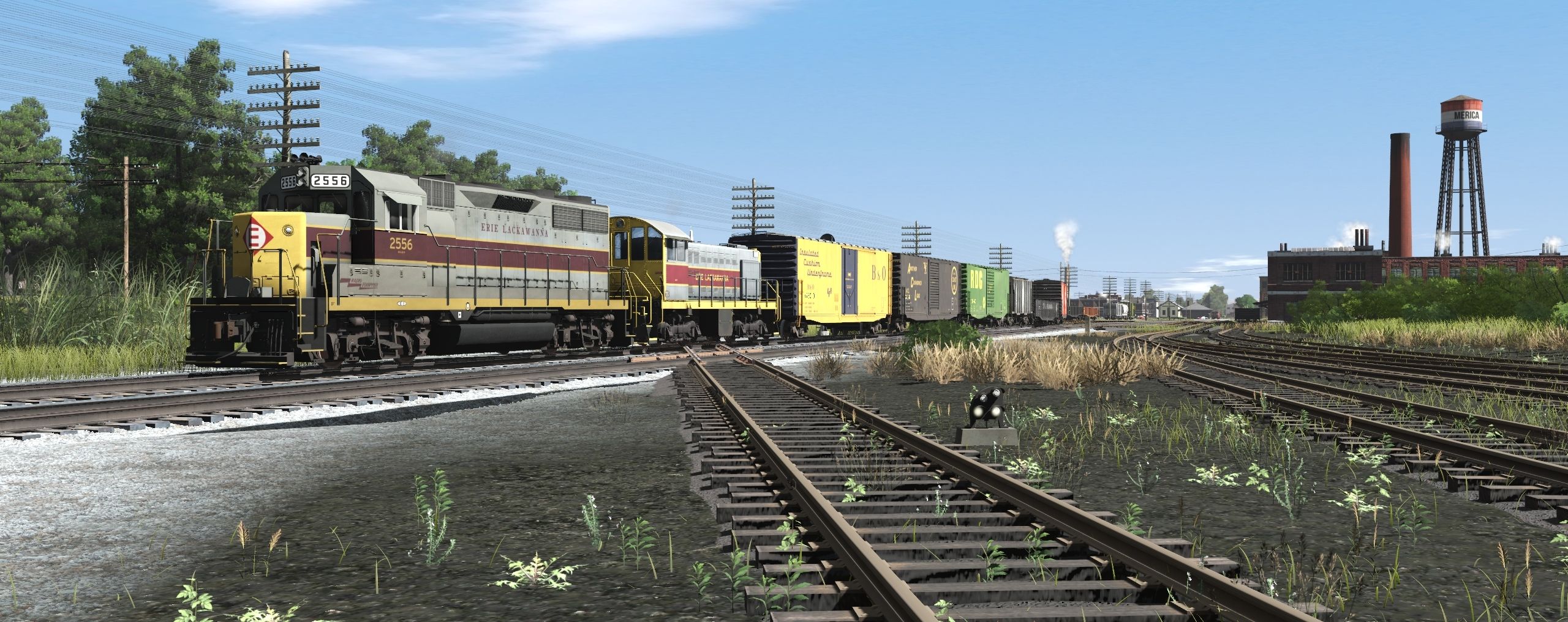 Tags: Trainz Railroad Simulator 2019, EL mahonning Division pre-Alpha, EL mahonning Division pre-Alpha - Default, GP35: EL #2556, EL S2 Gray, PC SD38, PC GP38-2, PC ex-NH U25B ph4, B&O 50' PS-1, ACL 50' PS-1, RDG 50' PS-1, SSW PS 2bay LO hopper, EL LO red 2893, EL LO 2893