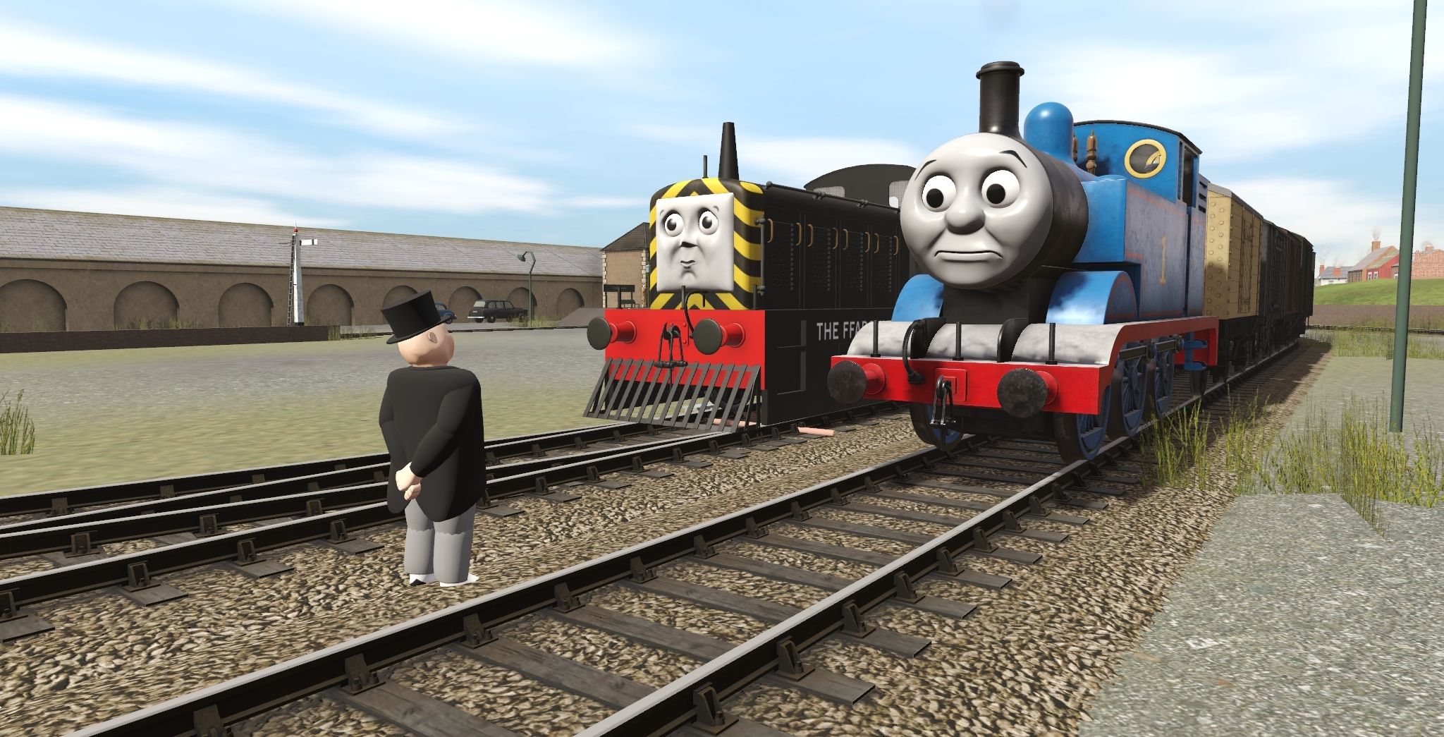 Tags: Trainz Railroad Simulator 2019, IoS - The Kellsthorpe Extension, Vampires, TTTE - Thomas The Tank Engine [TRS19], Mavis The Quarry Engine, TTTE - Bill The Saddle Tank Engine [TRS19], TTTE - Ben The Saddle Tank Engine [TRS19], TRW - 10T Saxa Salt Van, TRW - LMS 12T Steel Van, TRW - LNER 12T Van (S8 - Onwards), TRW - LNWR 6T Van, TTTE - LBSCR van, TRW - 7 Plank Wagon, TRW - BR 20T Brakevan