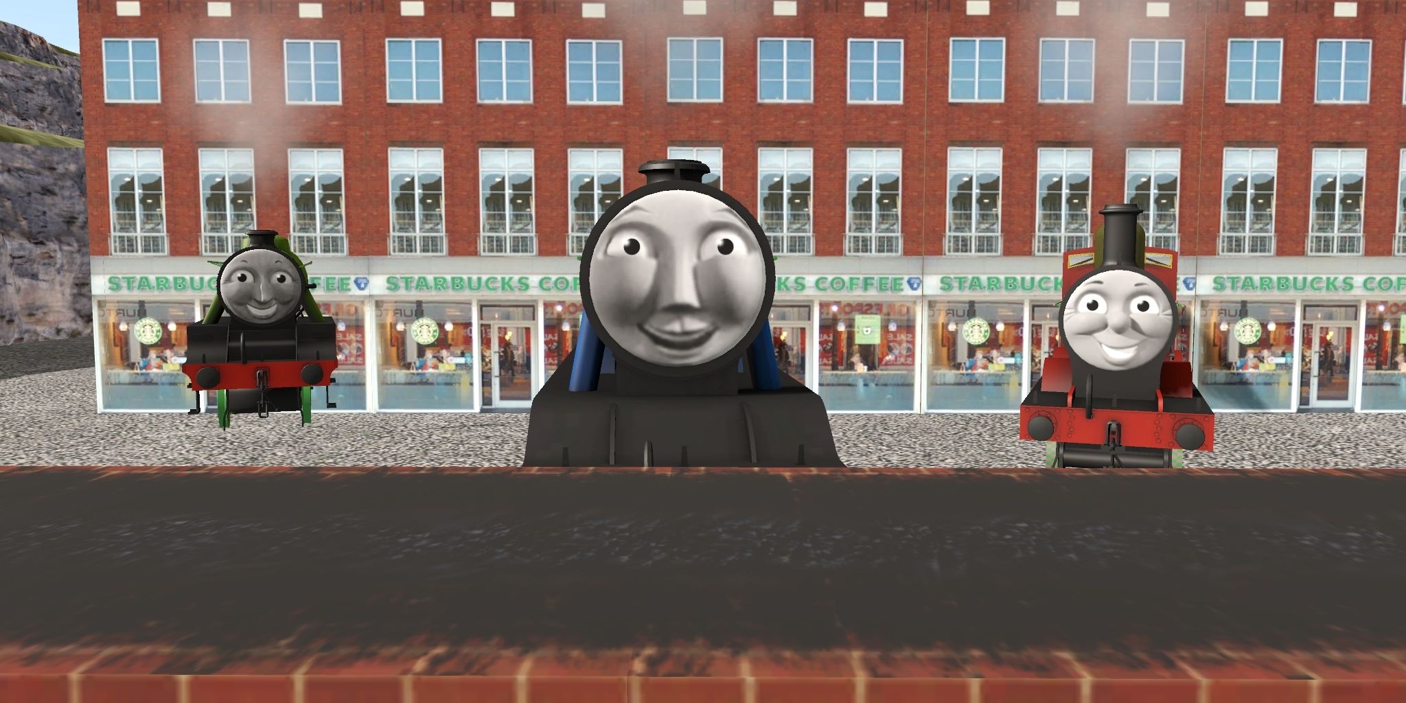 Tags: Trainz Railroad Simulator 2019, Percy wercy orders something from starbucks wuck uwu, Percy wercy orders something from starbucks wuck uwu - Default, Flying Cam, RWS Percy, RWS Gordon (Rebuilt - Post-1939), RWS James (NWR), RWS Henry (New Shape), RWS Gordon (Rebuilt) Tender, RWS James (NWR) Tender, RWS Henry (New Shape) - Fowler Tender
