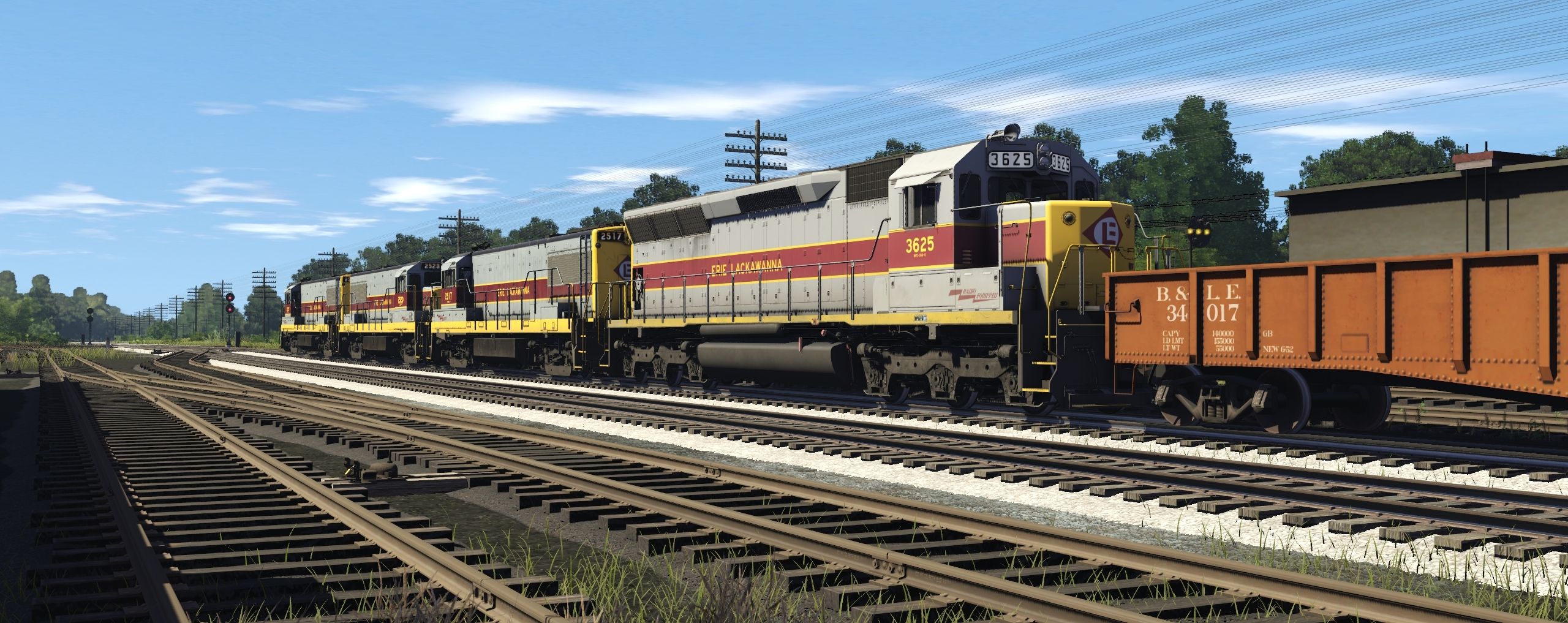Tags: Trainz Railroad Simulator 2019, EL mahonning Division pre-Alpha, Default, EL SD45, EL EMD F3A Maroon ph2 8441, EL U25B 2513-2527, PC SD38, G26 gondola B&LE, G26 gondola Erie, EL Greenville Gondola, EL LO weathered 2893, G26 gondola PRR, EL LO red weathered 2893, G26 gondola RDG
