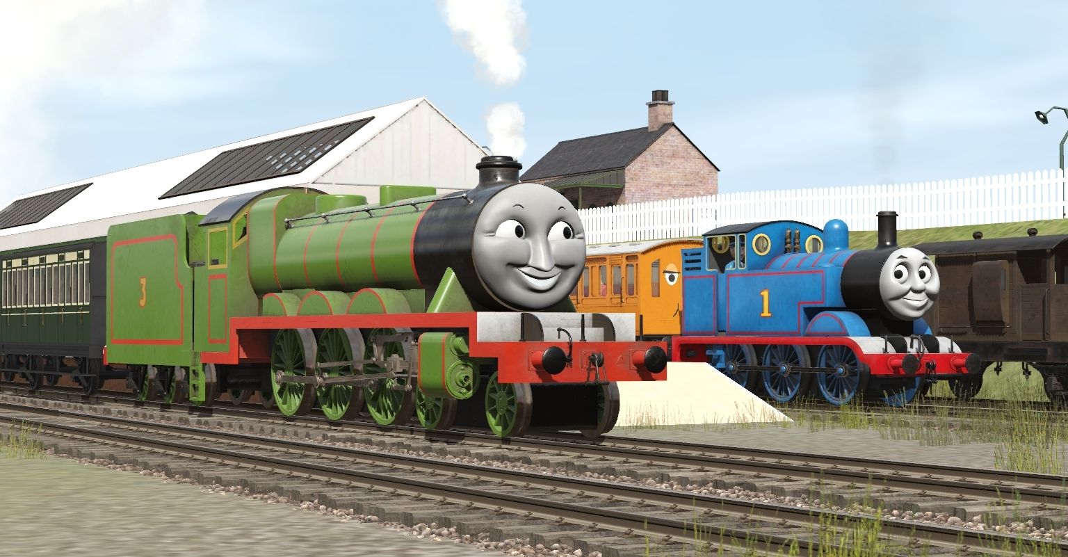 Tags: Trainz Railroad Simulator 2019, IoS - The Kellsthorpe Extension sunset, Flying Cam, TTTE - Henry, TTTE - Thomas The Tank Engine [TRS19], TTTE - Henry's Tender, TTTE - S2 25T Brake Van, TTTE - Annie [TRS19], Old Coach - 1st Class, TTTE - Clarabel [TRS19], Old Coach - 3rd Class, Old Coach - Brake