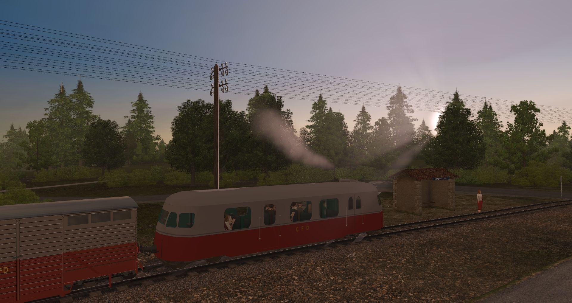Tags: Trainz Railroad Simulator 2019, Le Cheylard sans textures 1960 bis, Le Cheylard sans textures 1960 bis - Default, CFD_autorail_A80_rouge_et_gris, Remorque messagerie Billard