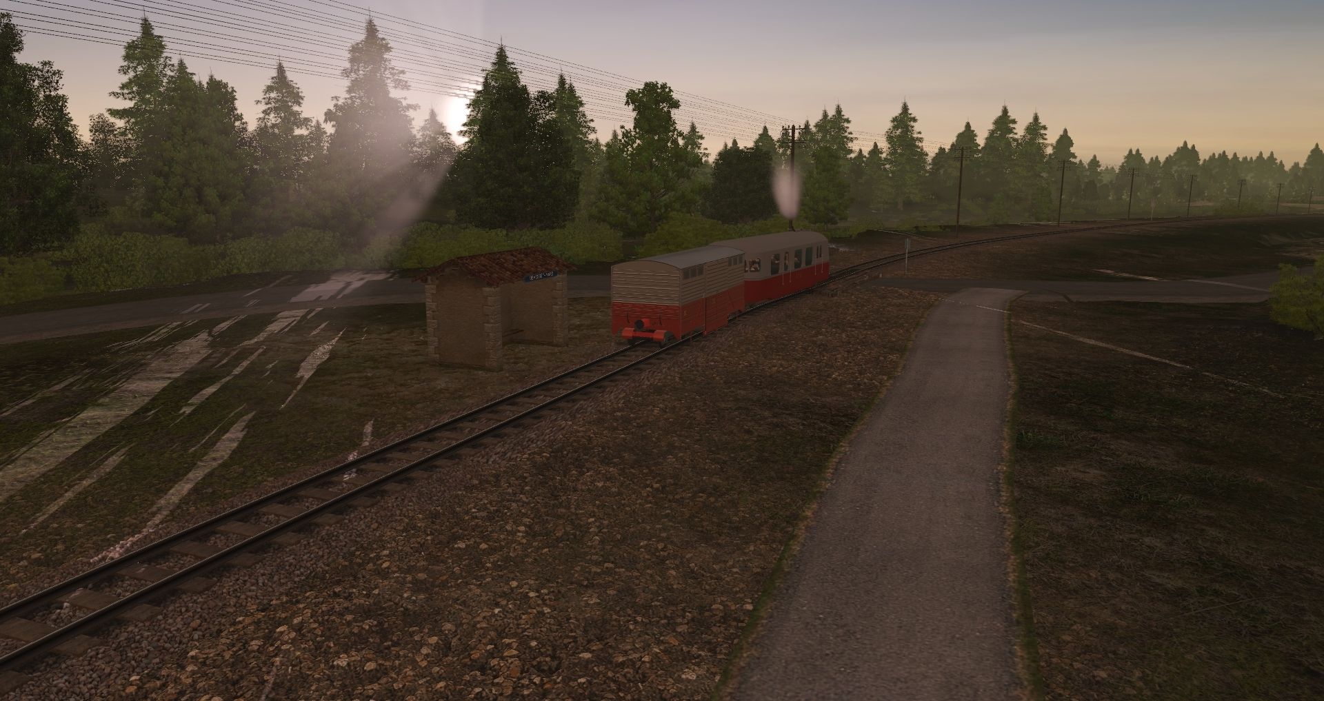 Tags: Trainz Railroad Simulator 2019, Le Cheylard sans textures 1960 bis, Le Cheylard sans textures 1960 bis - Default, CFD_autorail_A80_rouge_et_gris, Remorque messagerie Billard