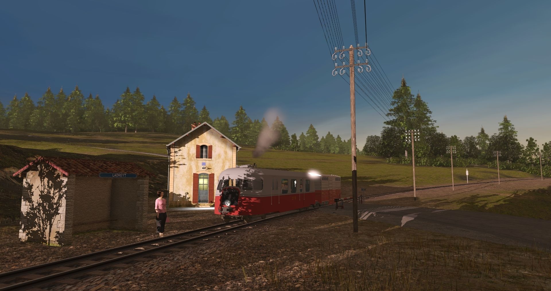 Tags: Trainz Railroad Simulator 2019, Le Cheylard sans textures 1960 bis, Le Cheylard sans textures 1960 bis - Default, CFD_autorail_A80_rouge_et_gris, Remorque messagerie Billard
