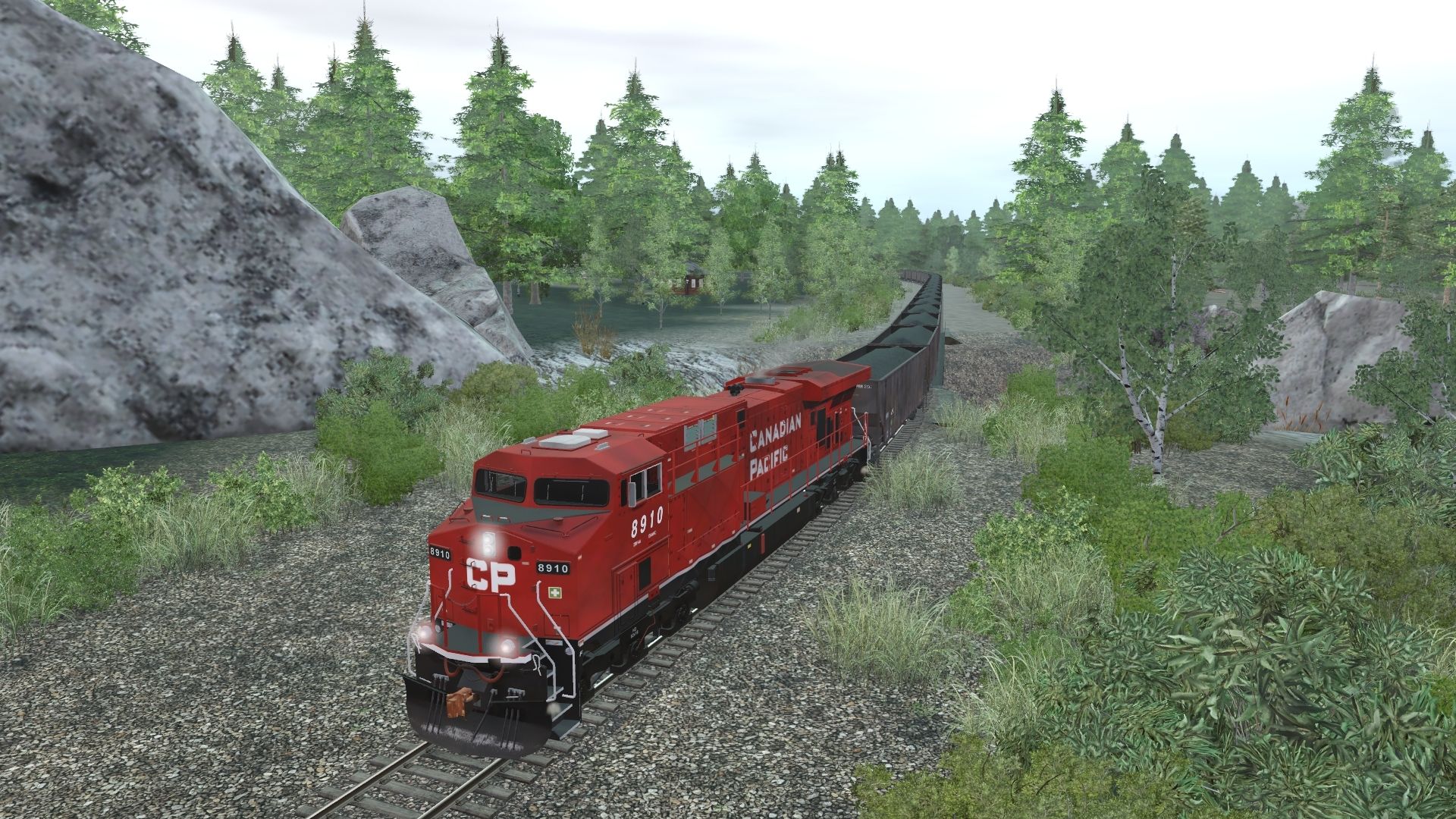 Tags: Trainz Railroad Simulator 2019, Canadian Rocky Mountains - Golden BC, 03 Westbound Coal, GE ES44AC CP 8760-8961, BPRR 4 Bay Hopper 2 Loaded