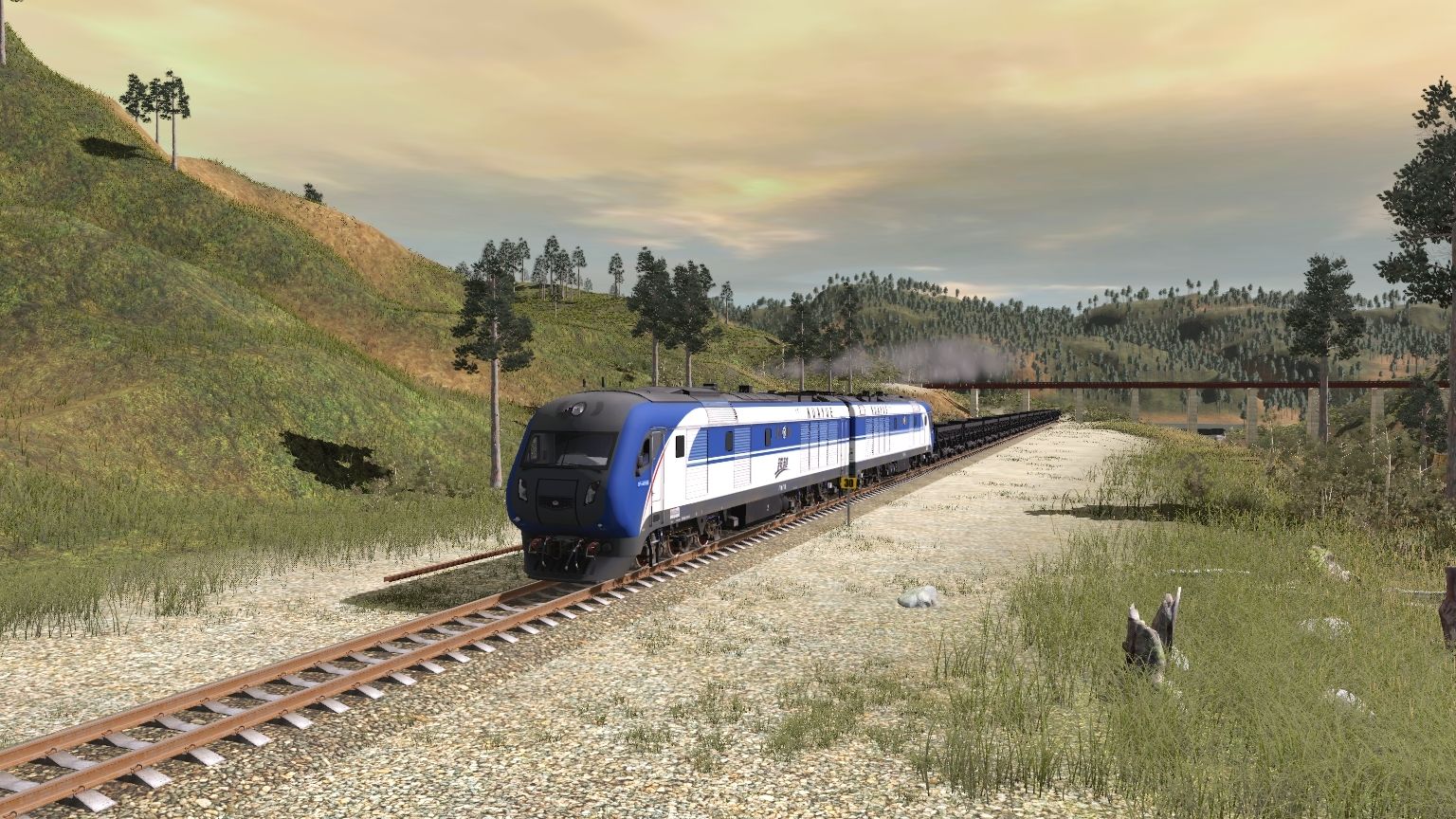 Tags: Trainz Railroad Simulator 2019 模拟火车 2019, Kickstarter County 2, 01, 东风11G“跨越”型准高速重联干线客运内燃机车 0102广铁广段, 东风11G“跨越”型准高速重联干线客运内燃机车 0101广铁广段, CHN KF60 dumpcar For Sandaoling Coal Mine 1.0