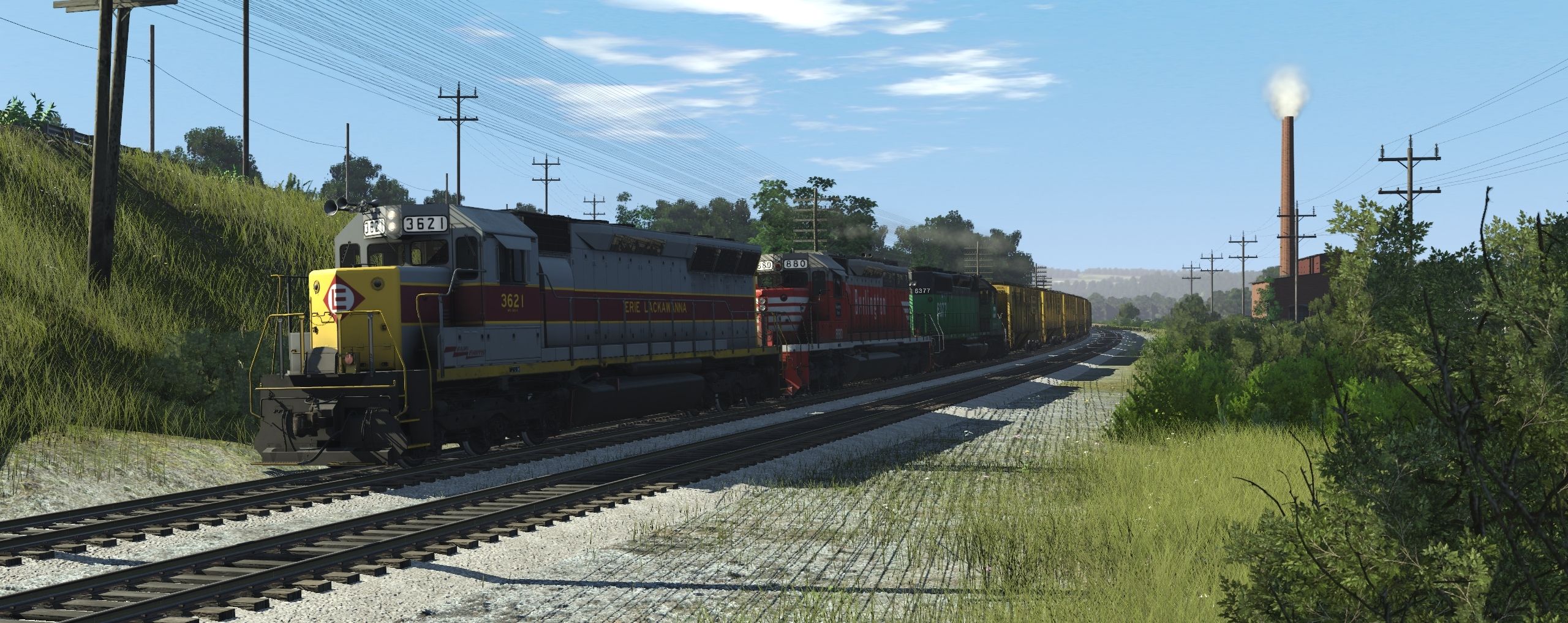Tags: Trainz Railroad Simulator 2019, EL mahonning Division pre-Alpha, Default, EL SD45, CB&Q SD40, BN SD40-2 1a (weathered), GATX Tank GATC 10000 (Black), MILW LO 4750 3 bay, MILW Caboose (Bay Window)