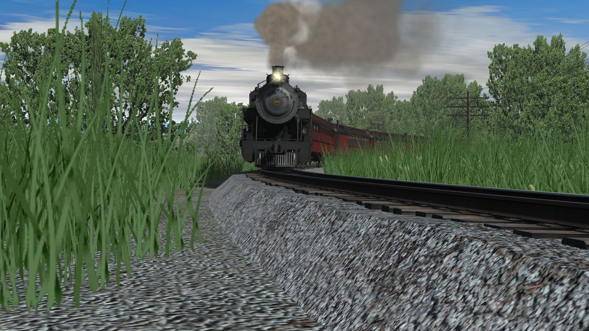 Tags: Trainz: A New Era, Tidewater Point Rail (remake c), Default, SRC 90 Engine V7, Mijack Translift 1200R, SRC 90 Tender V6 & V7, SRC Parlor Marian, SRC Dining Lee E Brenner, SRC Lounge Henry K Long, SRC Coach Warren F Benner, SRC Coach Walnut Hollow, SRC Coach Susquehanna, SRC Coach William McFarlan, SRC Open Window Daffodil Spring