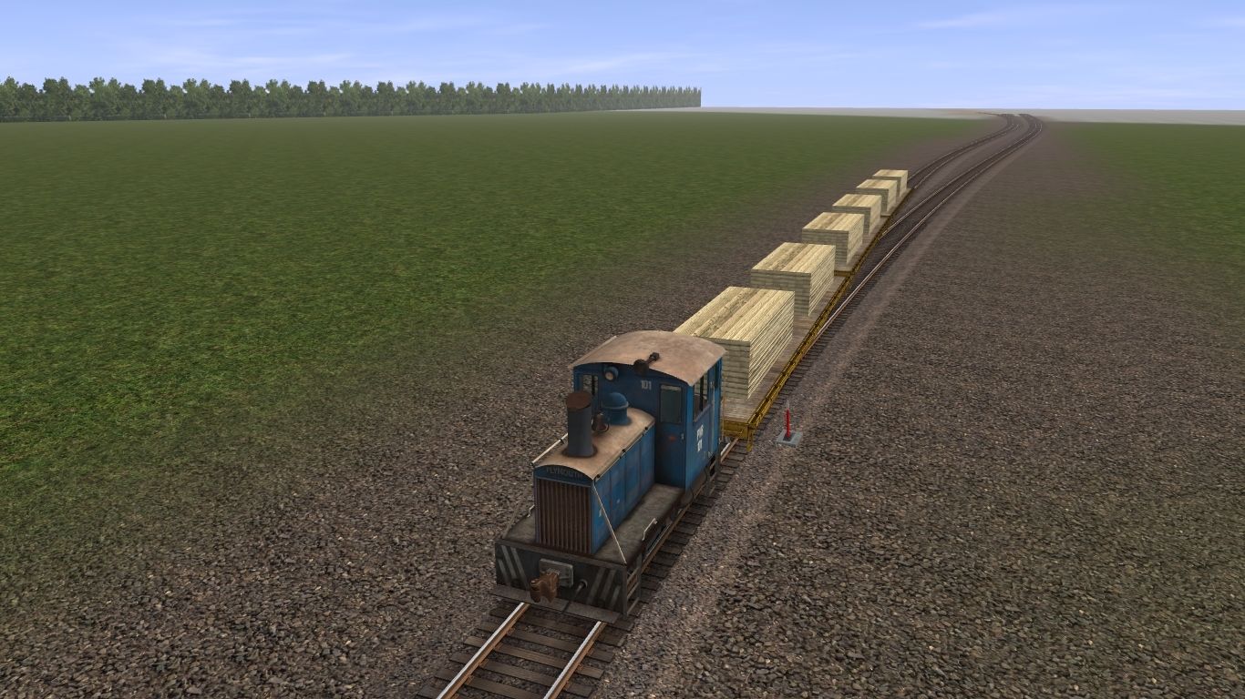 Posted by: MisterMidwestFoam | Posted:2020-09-18 00:32:30 Caption: Tags: Trainz: A New Era, Wisconsin National, Plymouth ML-8 Switcher blue 2, TTX Flatcar