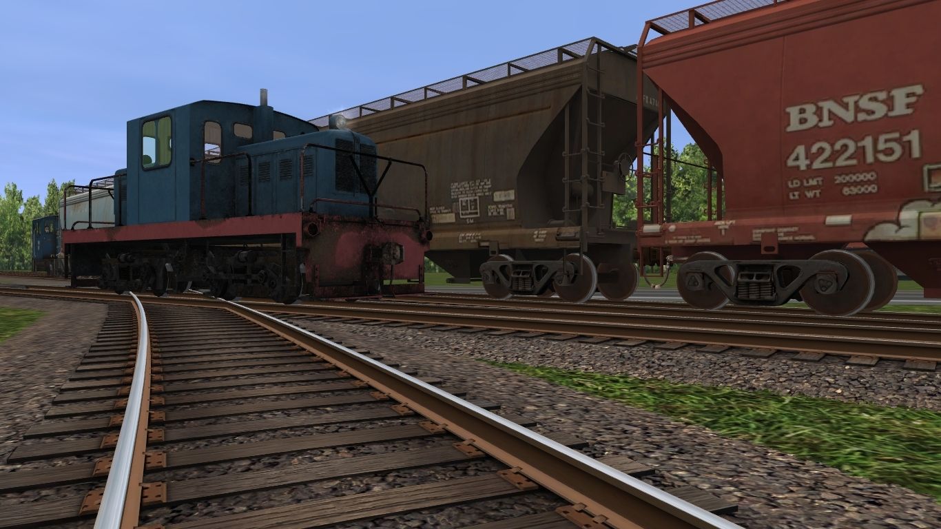 Tags: Trainz: A New Era, Wisconsin National, Default, Whitcomb 50 tonner blue and red, Plymouth ML-8 Switcher blue 2, BNSF Centerflow 3 Bay long hatch, ACFX #47409 3 Bay ACF, DGHX 4250 3 bay, RUSX ACF Centerflow 3 Bay long hatch