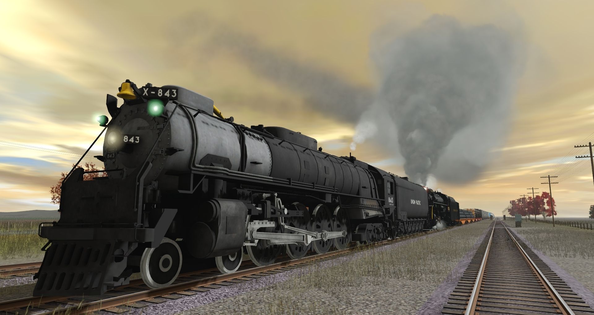 Tags: Trainz Railroad Simulator 2019, Fall Harvest - Nebraska, UP JMB FEF-3 843 V2, C&O Kanawha K-4 Steam, UP JMB FEF Black oil tender, C&O Kanawha K-4 Tender, TUME-300595-Flatcar-UP, TUME-300593-Logging-Flatcar-MILW, TUME-300552-Covered-Hopper-UP, union pacific piggyback car 1, union pacific piggyback car 2, union pacific piggyback car 4, union pacific piggyback car 5