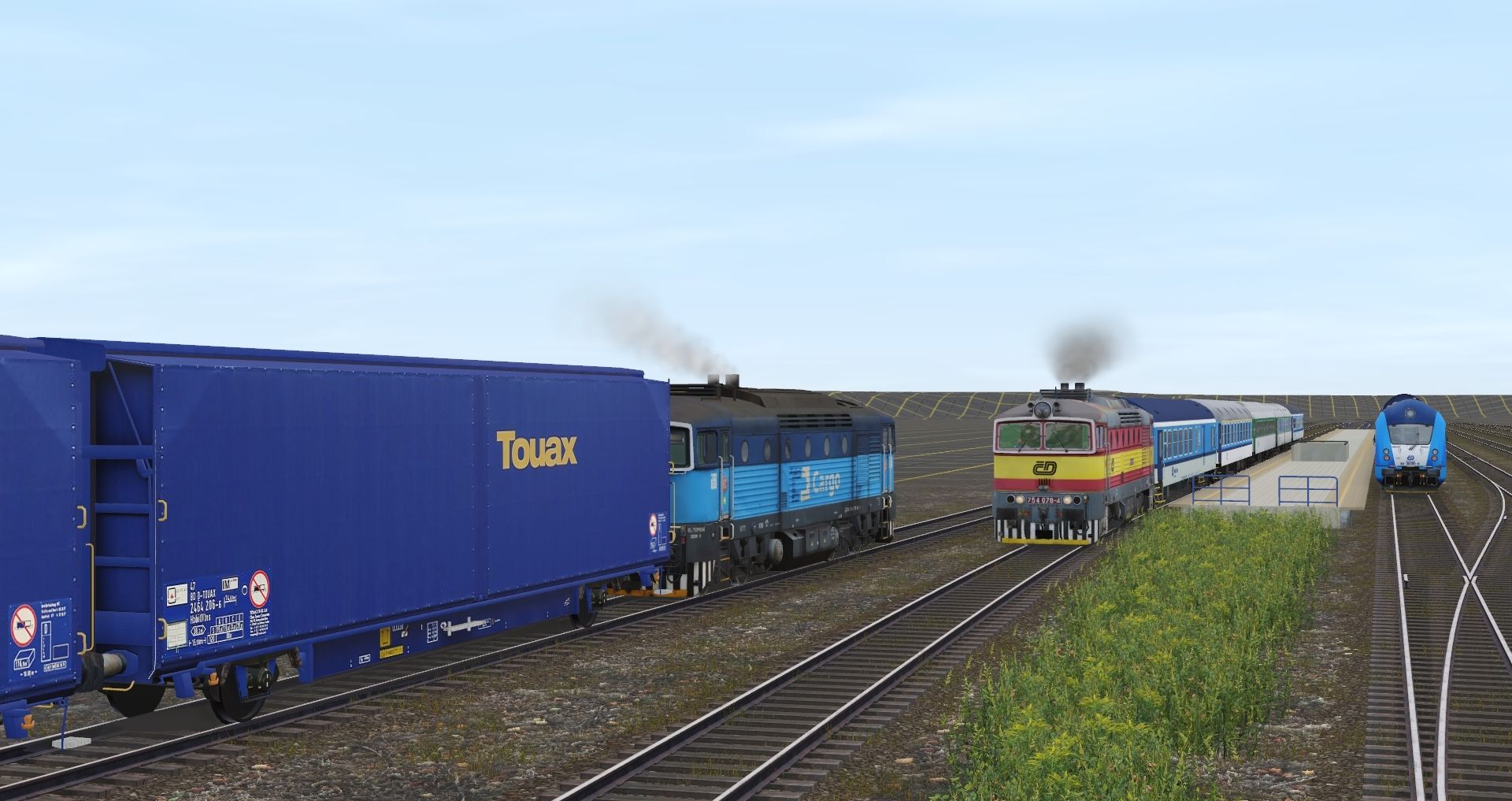 Tags: Trainz Railroad Simulator 2019, Fiktivní mapa 0.1.7 28.5.2020, Fiktivní mapa 0.1.7 28.5.2020 - Default, P-CDC 750 338-6, CD 754 078-4, DM ČD Bfhpvee, CD 750 714-8, MAX 754.061, BFL 742.506, R-Calmitz Uacs 739, Touax Hbbillns, P-CZ UNIDO Zaes 030-0, P-CZ SPCH Zaes 7988 738-2, MAX-CDC Kils 060