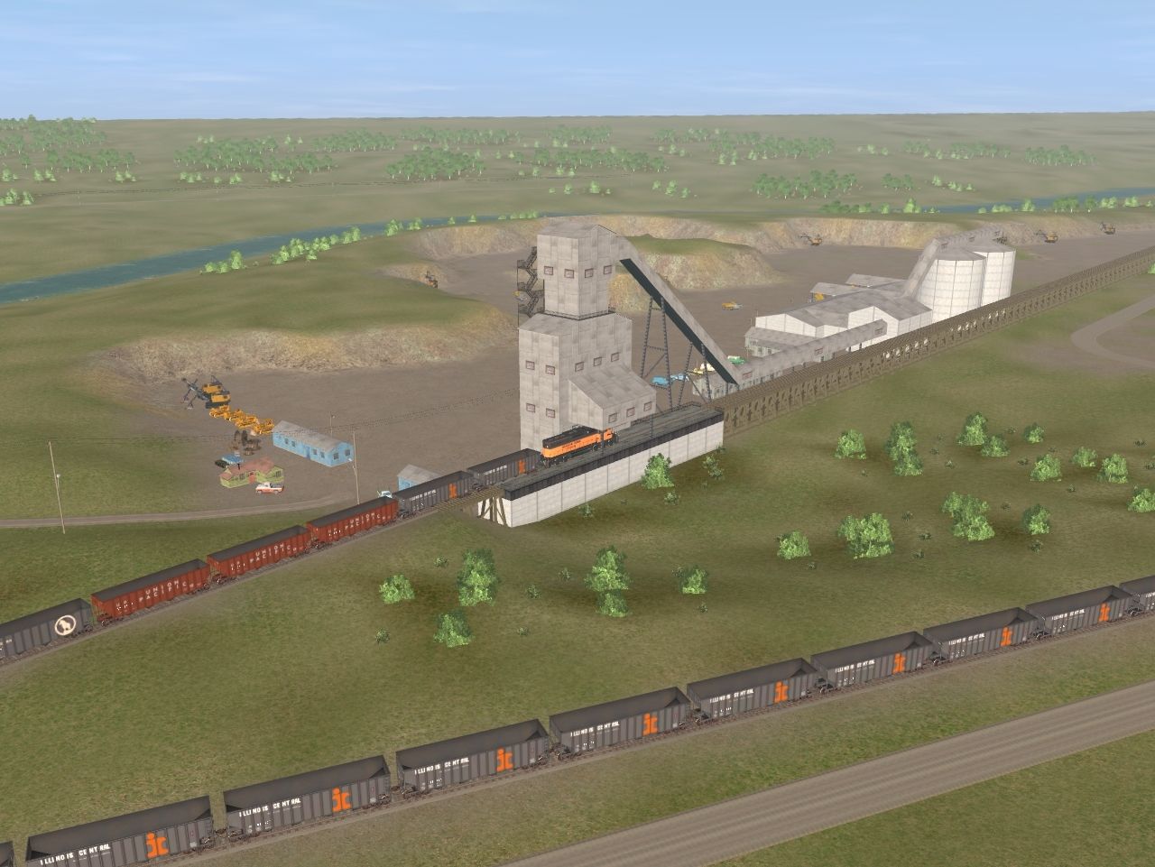 Tags: Trainz: A New Era, Season Town Northern RR, Season Town Northern RR - Limestone Transportation (summer time), TUME-71402180-SD40-2-STN, TUME-300571-Open-Hopper-IC, TUME-300573-Open-Hopper-UP, TUME-300572-Open-Hopper-GN, TUME-300574-Open-Hopper-UP