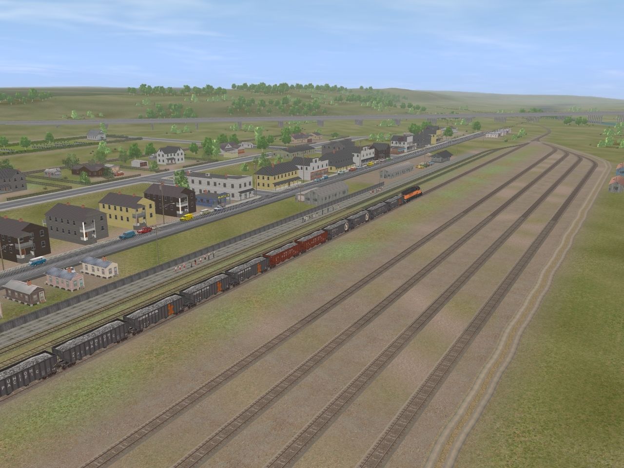 Tags: Trainz: A New Era, Season Town Northern RR, Season Town Northern RR - Limestone Transportation (summer time), TUME-71402180-SD40-2-STN, TUME-300573-Open-Hopper-UP, TUME-300572-Open-Hopper-GN, TUME-300574-Open-Hopper-UP, TUME-300571-Open-Hopper-IC