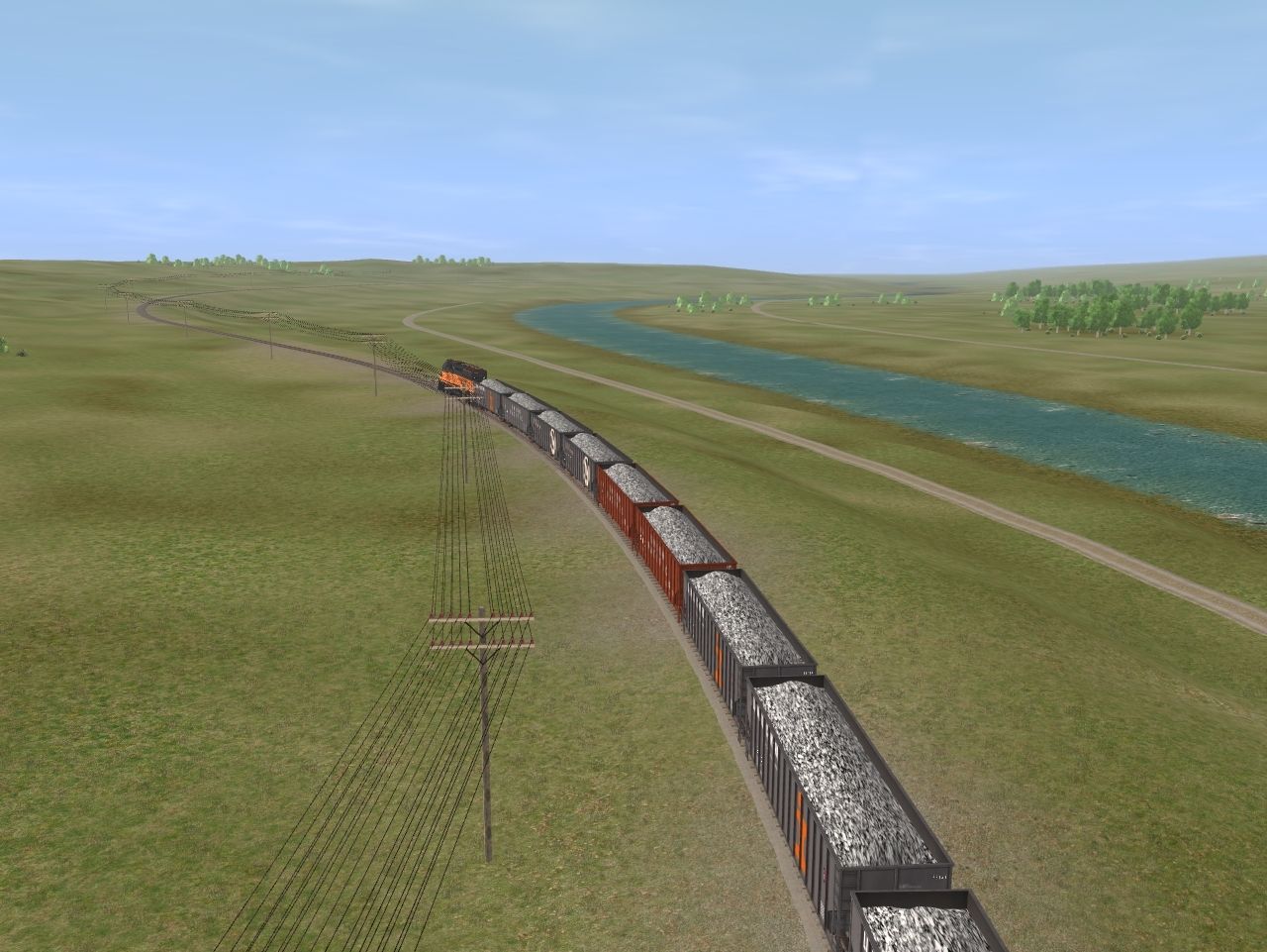 Tags: Trainz: A New Era, Season Town Northern RR, Season Town Northern RR - Limestone Transportation (summer time), TUME-71402180-SD40-2-STN, TUME-300573-Open-Hopper-UP, TUME-300572-Open-Hopper-GN, TUME-300574-Open-Hopper-UP, TUME-300571-Open-Hopper-IC