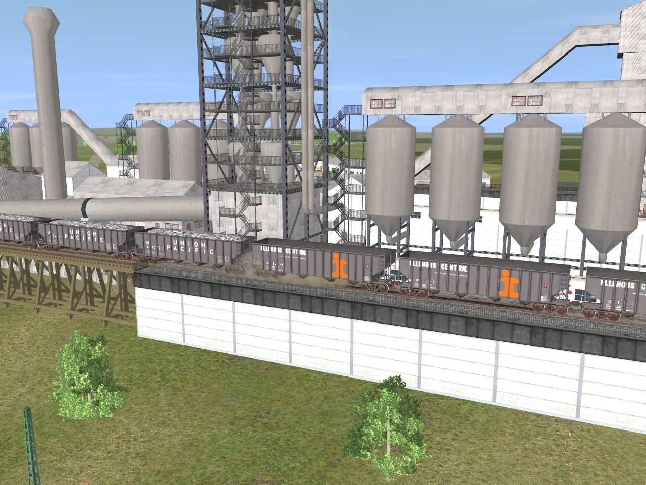 Tags: Trainz: A New Era, Season Town Northern RR, Season Town Northern RR - Limestone Transportation (summer time), TUME-71402180-SD40-2-STN, TUME-300573-Open-Hopper-UP, TUME-300572-Open-Hopper-GN, TUME-300574-Open-Hopper-UP, TUME-300571-Open-Hopper-IC