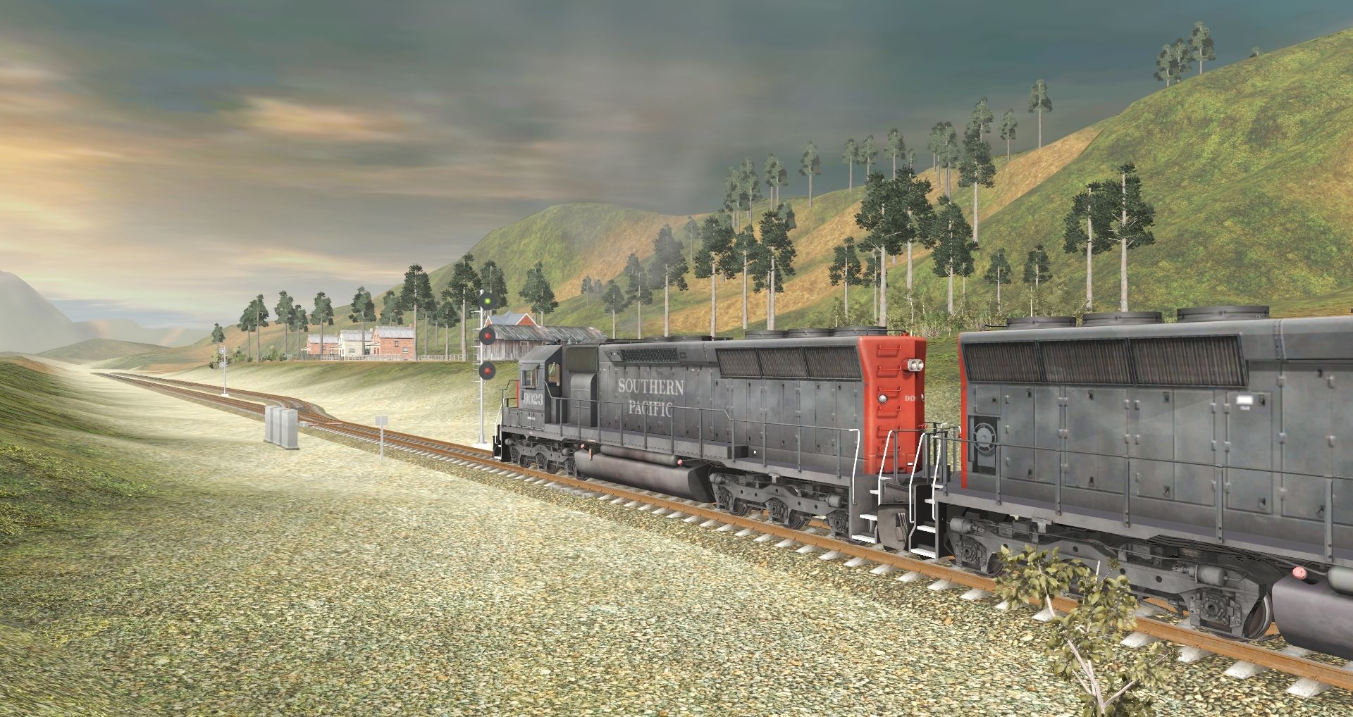 Tags: Trainz Railroad Simulator 2019, Kickstarter County 2, Tutorial 09 - Dynamic Brake, SP SD45, JRPX ACF Centerflow 4 Bay round hatch, SP C50-9 Caboose