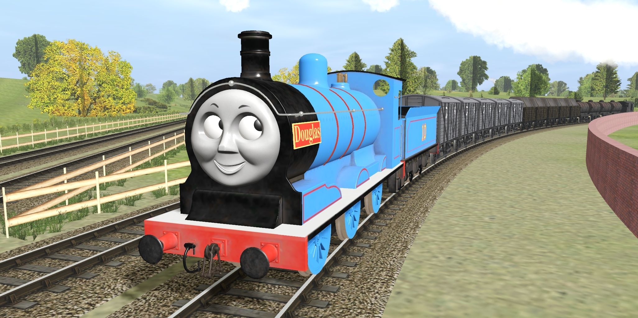 Tags: Trainz Railroad Simulator 2019, Knapford-Tidmouth Circa 2009, TTTE - Douglas - Blue Livery, TTTE - Douglas' Tender - Blue, (#1TFM) Ventilated GWR Van 2012, Troublesome Truck - S1 Brown, (#1TFM) Sodor Tanker Tar 2015, TRW - SR 25T Pillbox Brakevan, Sodor Works Unit Coach, Sodor Breakdown Flat Truck Sleepers, Sodor Breakdown Crane Lowered