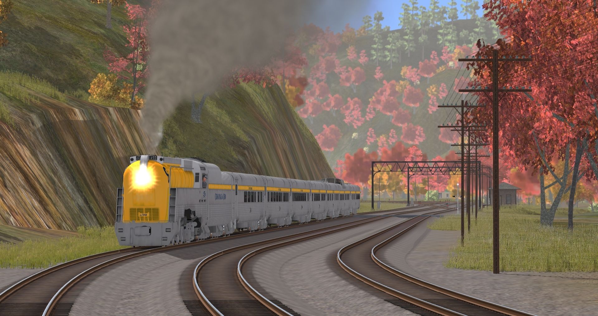 Tags: Trainz: A New Era, C&O Hinton Division, C&O L1 Hudson Engine, CWRY EX-C&O K-2 Mikado Engine, C&O Wood Sheathed Caboose V1, 40ft Boxcar D&H Wood 2, 70ton AAR Flatcar C&O, 36ft Boxcar SSW, 36ft Boxcar LV 1, 40ft Boxcar C&O, C&O Coal Gondola, C&O L1 Hudson Tender, Texaco 3-dome HW tank