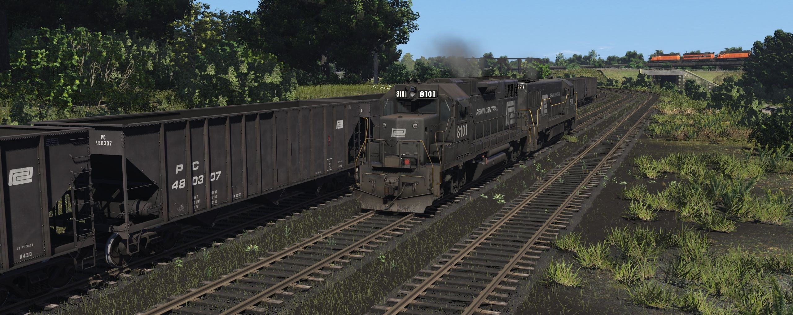 Tags: Trainz Railroad Simulator 2019, EL mahonning Division pre-Alpha, Default, PC GP38-2, PC ex-NH U25B ph4, BLE 1973 SD38AC 867, BLE 1973 SD38AC 865, BLE 1973 SD38 861, BLE 1973 SD9 823, PC 100 Ton Hopper, PRR 100 Ton Hopper, BLE 100 Ton Hopper