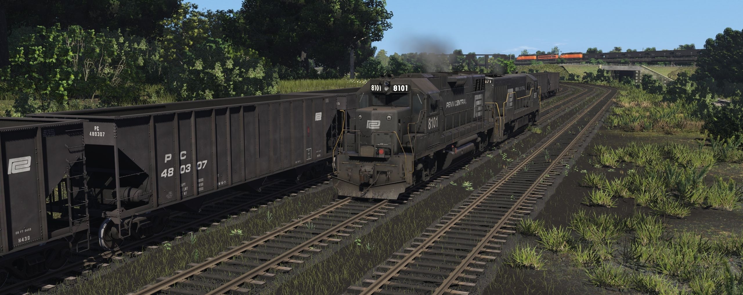 Tags: Trainz Railroad Simulator 2019, EL mahonning Division pre-Alpha, Default, PC GP38-2, PC ex-NH U25B ph4, BLE 1973 SD38AC 867, BLE 1973 SD38AC 865, BLE 1973 SD38 861, BLE 1973 SD9 823, PC 100 Ton Hopper, PRR 100 Ton Hopper, BLE 100 Ton Hopper