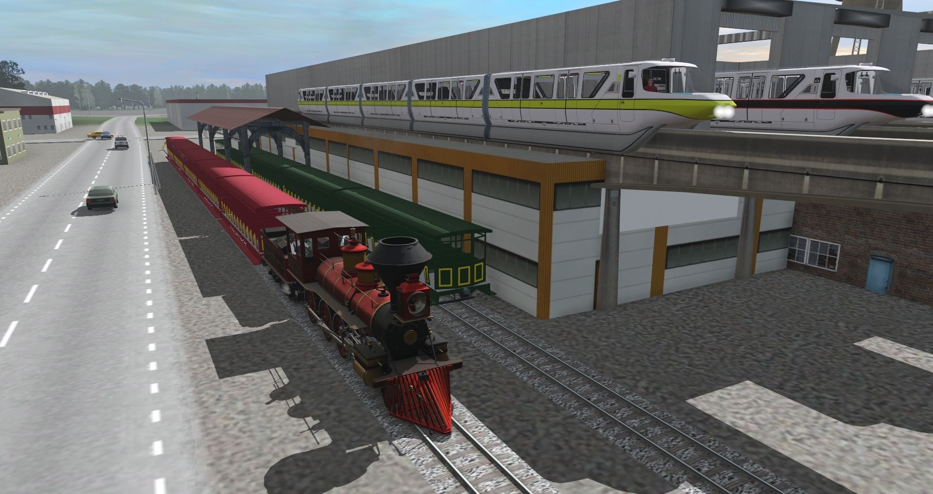 Tags: Trainz Railroad Simulator 2019, Walt Disney World Monorail, Walt Disney World Monorail - Default, Walt Disney World Railroad #1, MKVI Monorail TRS Lime cab, MKVI Monorail TRS Black cab, MKVI Monorail TRS Red cab, MKVI Monorail TRS Blue cab, MKVI Monorail TRS Green cab, MKVI Monorail TRS Silver cab, TBS Plymouth-3 axle Monon, Walt Disney World Railroad #1 Tender, MKVI Monorail TRS Lime car, DEC Busch Garden Red Pass Modern