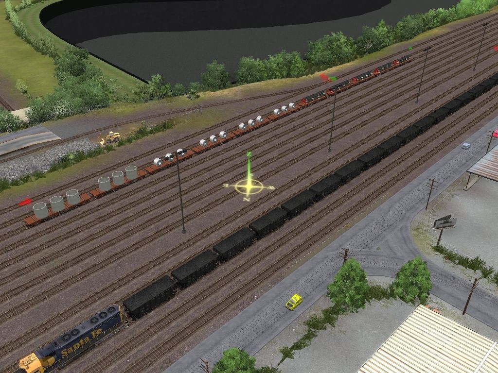 Posted by: calablue | Posted:2020-09-26 16:31:59 Caption: Tags: Trainz: A New Era, Brazemore Yard, Freighthauler, ATSF SD45, ATSF GP60M, VR Q Flat T3a - 2, USRA 55T H C&O