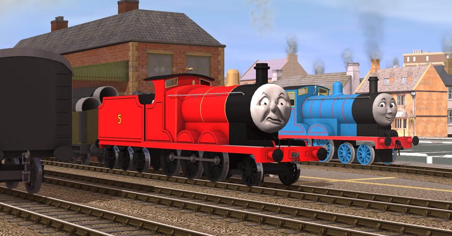 Tags: Trainz: A New Era, ZA - IoSCRV2 - PGB (Part II) - Rumble Bridge, Flying Cam, TRW - Edward The Blue Engine (TVS) TS12+, Henry The Green Engine 3rd Shape 2012, James the Red Engine 2010, Series 1 Express Brake Coach, James' Tender 2010, TRW - L&B 8T Open Wagon, Series 1 Express Composite Coach, TRW - Edward's Tender (TVS) TS12+, TRW - GWR Open C Wagon, TRW - L&B 4T Wagon