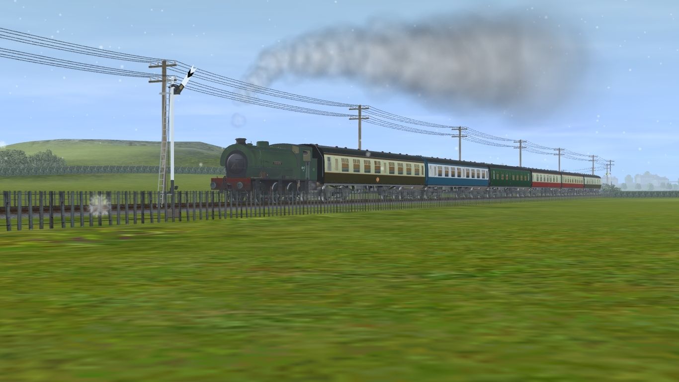 Tags: Trainz: A New Era, GWR Cornwall England Railway Branch Layout, Default, J94 class WD, BR Mk1 SK Brown, BR Mk1 SK Blue, BR Mk1 FO Green, BR Mk1 FK Carmine, BR Mk1 SO Carmine, BR Mk1 BSK Brown
