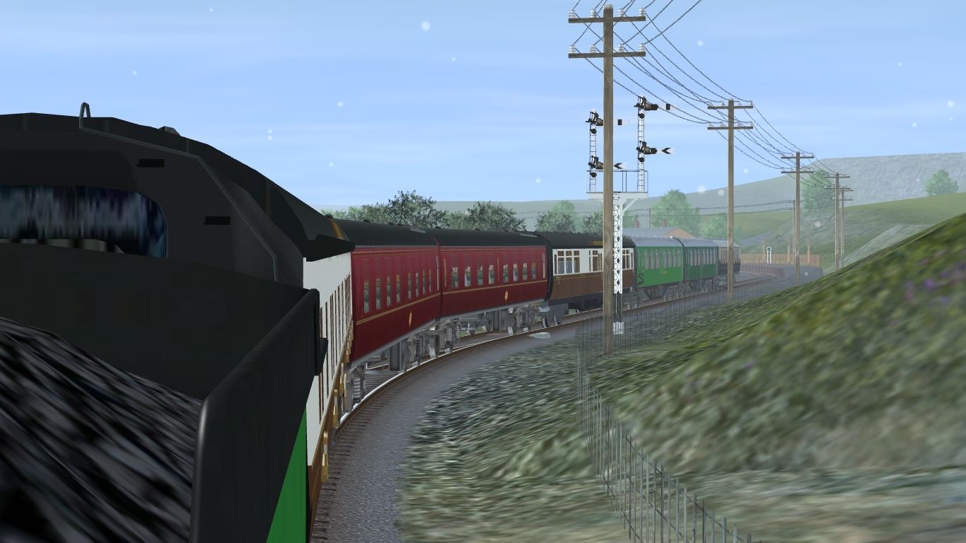 Tags: Trainz: A New Era, GWR Cornwall England Railway Branch Layout, Default, SR Urie/Maunsell N15 'King Arthur' - Eastleigh 2nd Batch malachite, SR Urie Tender - Malachite Green, GWR 1922 3rd brake Paddington lot 1321, BR Mk1 SO Maroon, GWR 1922 Restaurant Car Paddington, Bullied Corridor 1st class SR Livery, Bullied Corridor 1st class, GWR Collet 57' Corridor Third